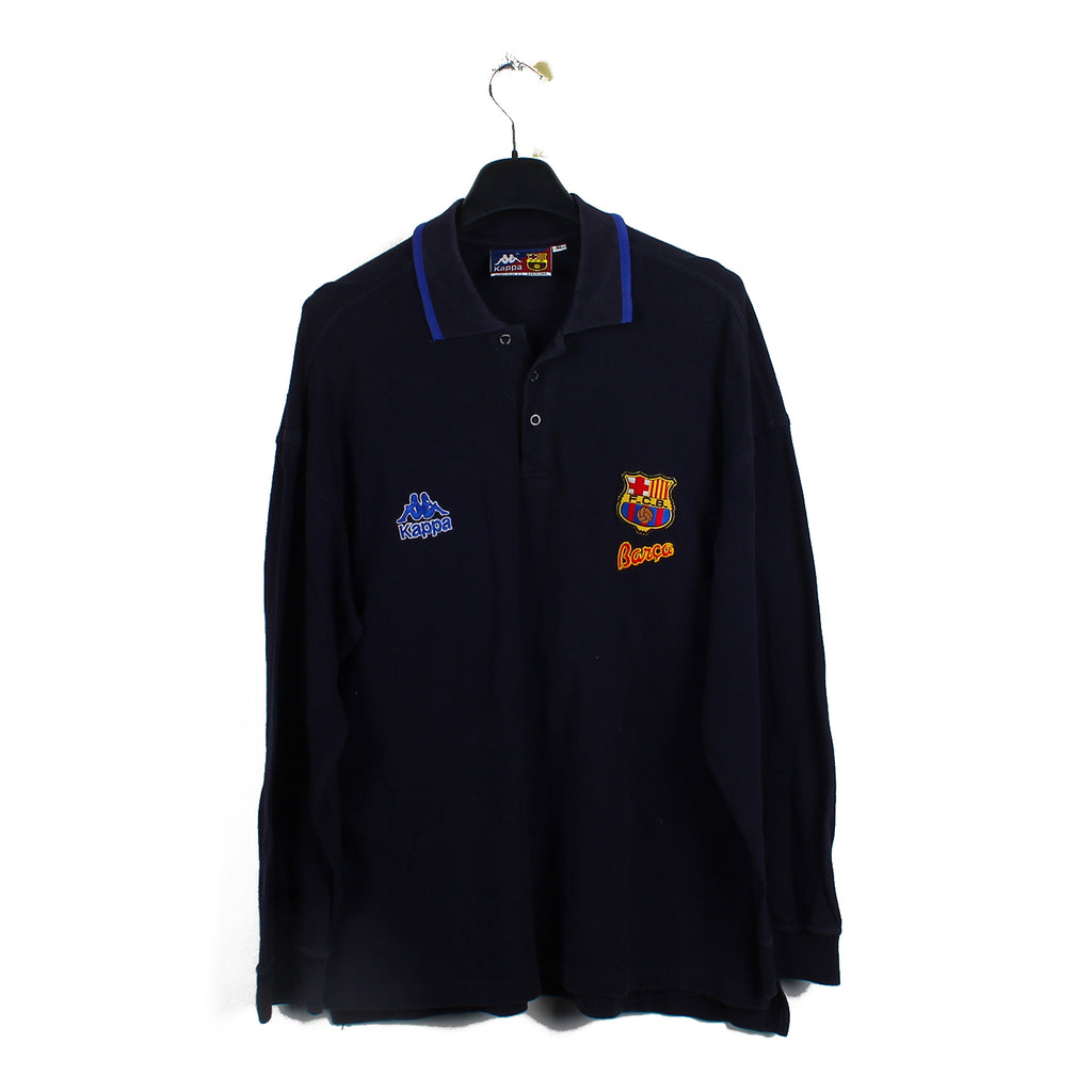 Histoire : Rare polo porté par les hommes du légendaire Johan Cruyff lors de trois saisons consécutives. Le Barça remportera la Liga pour la troisième et quatrième fois d’affilée en 1992/1993 et 1993/94. Pendant cette période, les Catalans remporteront deux fois la Supercoupe d’Espagne et une fois la Supercoupe de l’UEFA.