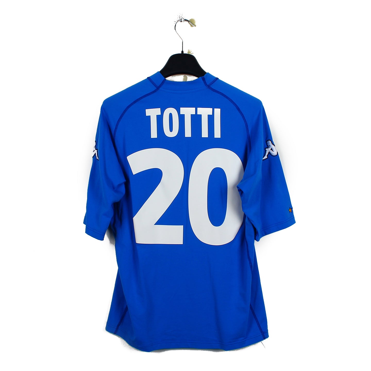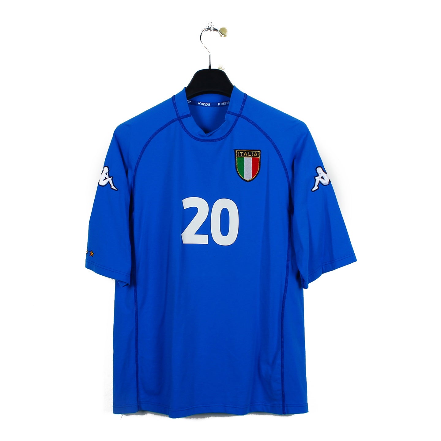 Histoire : Maillot domicile porté par la sélection italienne alors dirigée par Dino Zoff lors de l'Euro 2000 organisé entre la Belgique et les Pays-Bas. Emmenés par leur capitaine Paolo Maldini, les joueurs de la Squadra Azzurra atteindront la finale, perdue 2-1 en prolongation face aux Français tout juste sacrés champions du monde.