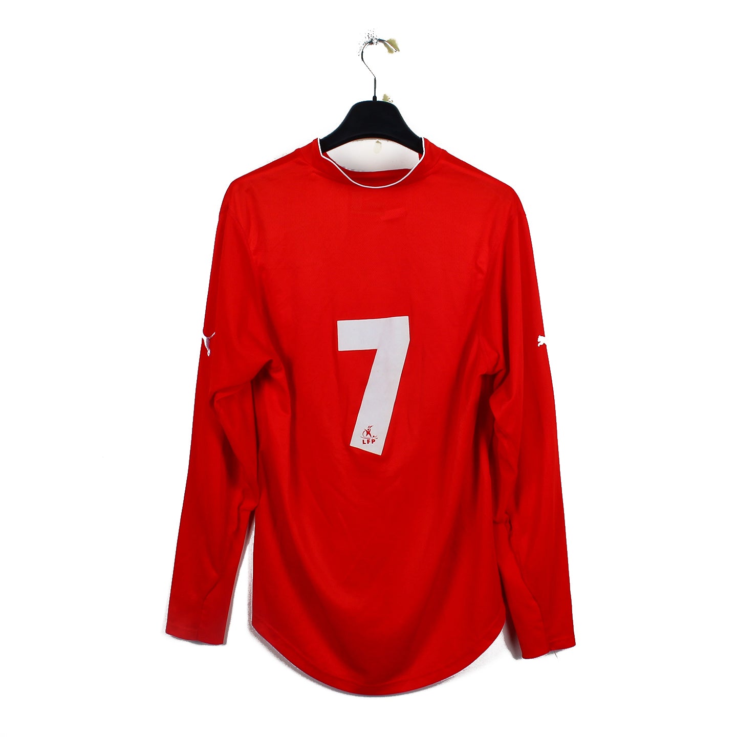 Le maillot en détail : Maillot collector porté/préparé par un joueur de l'équipe réserve dans un excellent rare, les logos et le sponsor sont impeccables.