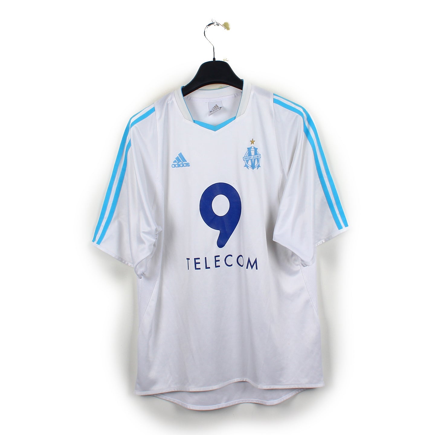 Histoire : Maillot domicile porté lors d'une saison mitigée pour les olympiens. Sur le plan européen, ils brilleront et iront jusqu'en finale de la Coupe UEFA, malheureusement battus par les espagnols de Valence. En championnat, ils finiront à une moyenne 7ème place. Saison marquée par l'éclosion d'une future star : Didier Drogba avec ses 32 buts pour sa première et unique saison marseillaise.