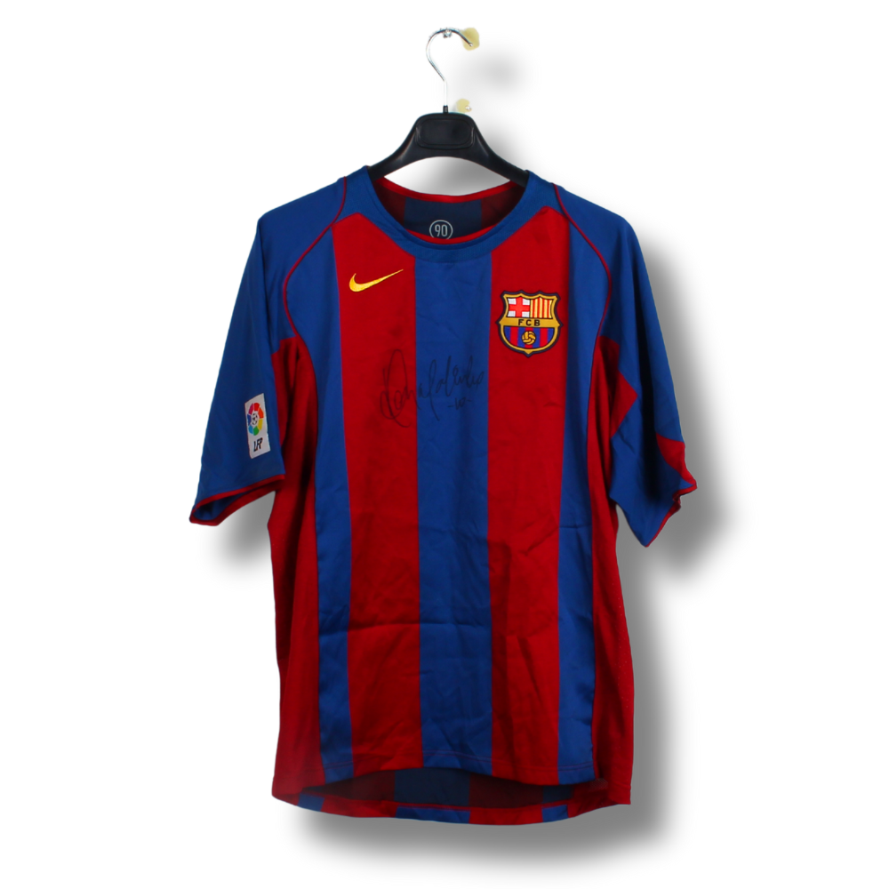 Histoire : Maillot domicile porté durant une saison devenue historique, voyant les débuts du jeune Lionel Messi sous les couleurs du club catalan. Les Blaugrana remporteront la Liga pour la première fois depuis la saison 1998-1999, 4 points devant leur rival Madrilène.