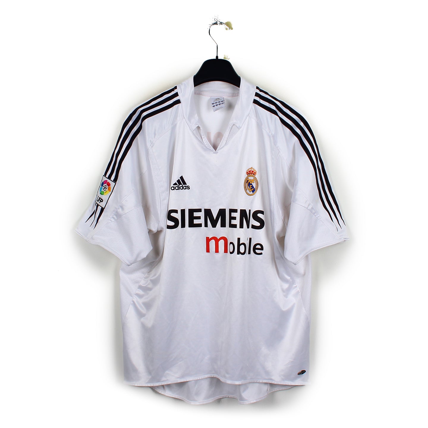 Histoire : Maillot domicile porté par les Galactiques, qui finissaient cette saison-là à une décevante seconde place à 4 points de leurs rivaux catalans. Leur élimination prématurée en Champions League ne leur permettra pas d'honorer cette magnifique tunique.