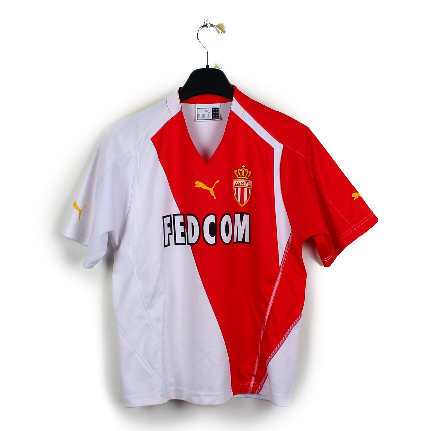 Histoire : Maillot domicile porté par les hommes de Didier Deschamps lors d’une saison où ils termineront à la troisième place de la Ligue 1. Le club de la principauté s’illustre aussi en phase de groupes de Ligue des Champions, ils sortiront premiers devant les Reds de Liverpool. Ils porteront aussi ce maillot lors de la saison 2005/06 conclue par une dixième place. Après un début de saison décevant et des désaccords avec le président, DD décide de résigner son contrat dès le 19 septembre 2005 avec le club du Rocher. Une fin inattendue et brutale.