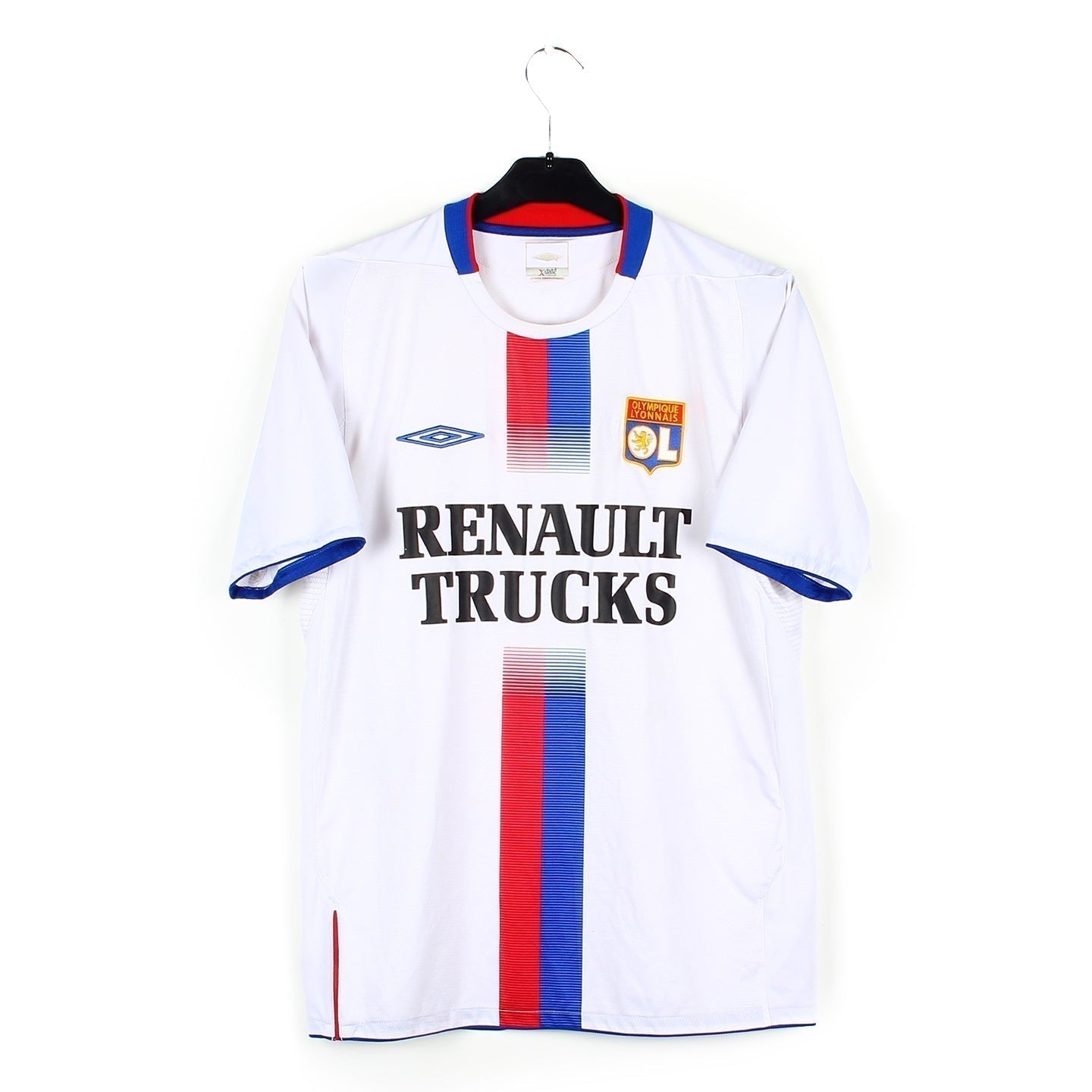 Histoire : Maillot domicile porté par les lyonnais lors d'une saison qui les verra sacrés champion de France pour la 4ème fois consécutive. Sur la scène européenne les joueurs présidés par Jean-Michel Aulas atteindront les quarts de finale avant de se faire éliminer aux tirs au but par le PSV Eindhoven.