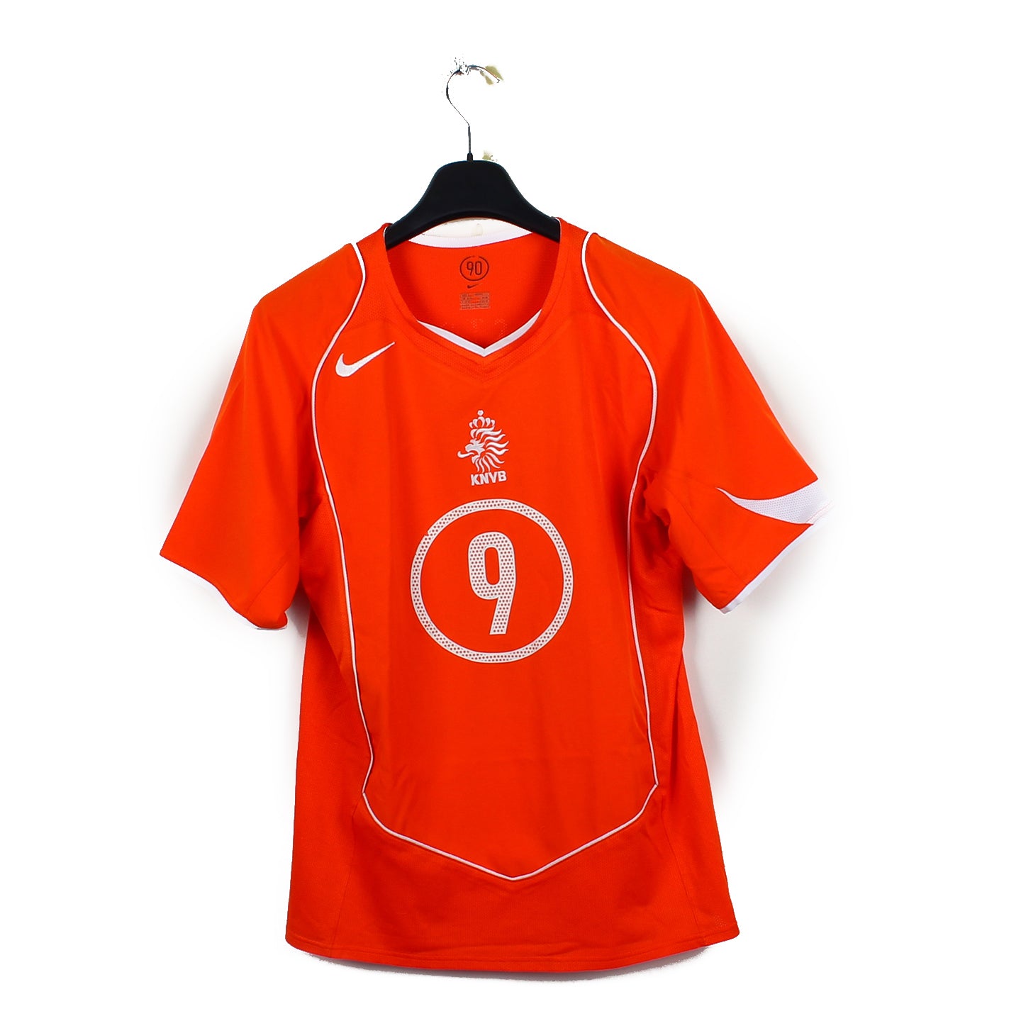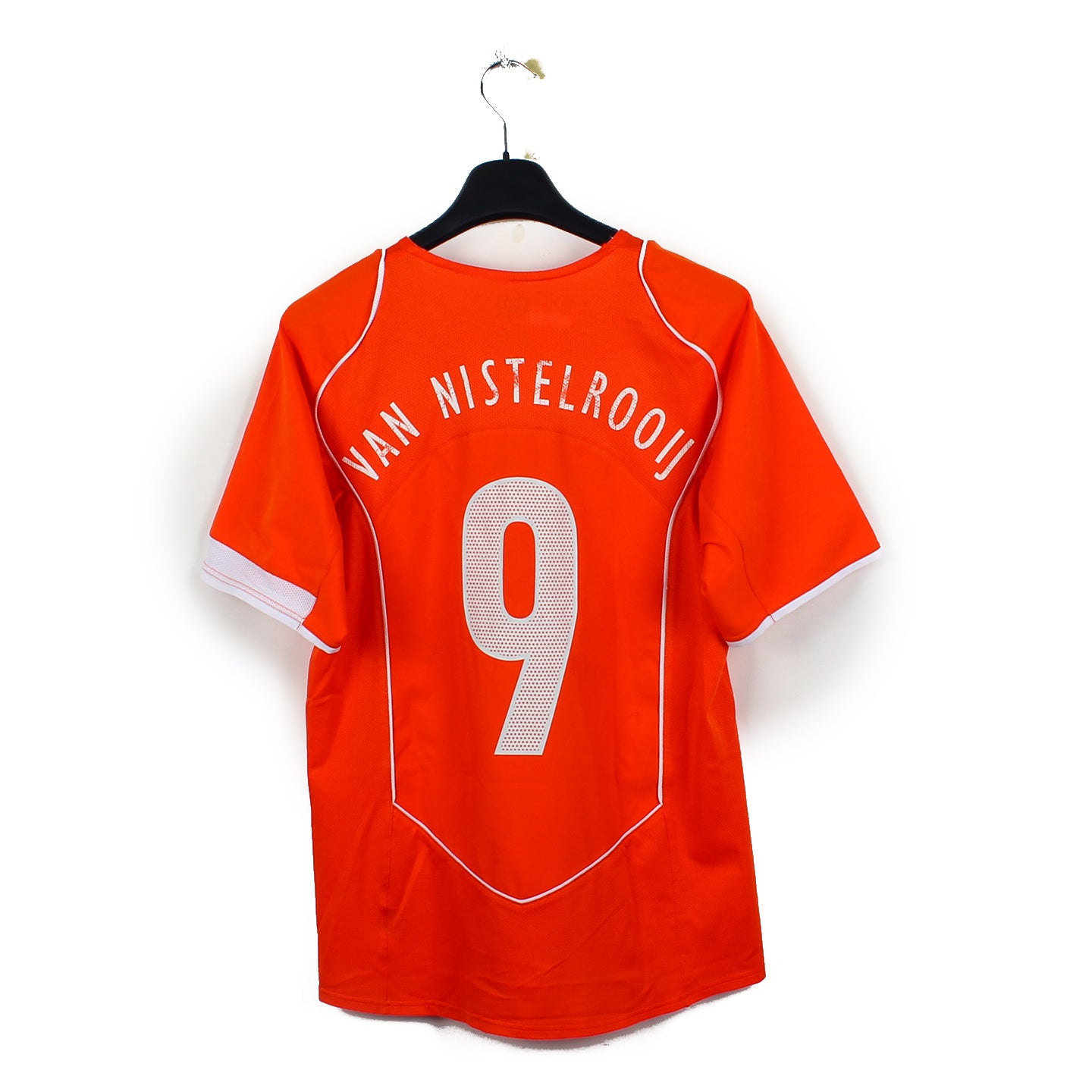 Histoire : Maillot domicile porté par la Hollande lors de l'Euro 2004. Les hommes de Dick Advocaat iront jusqu'en demi-finale où ils s'inclineront face à l'hôte portugais du jeune Cristiano Ronaldo.