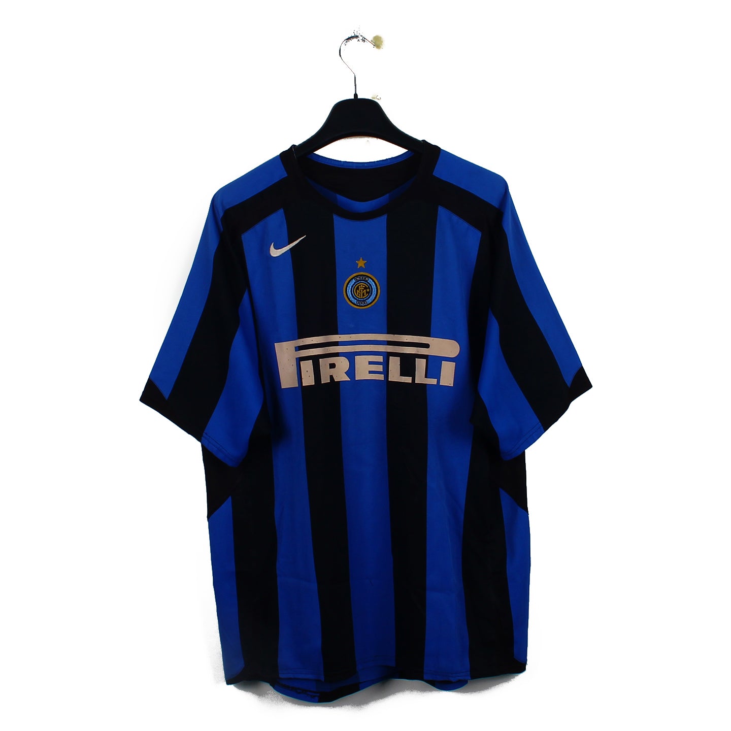 Histoire : Maillot domicile porté par les joueurs de Roberto Mancini lors de la fameuse saison du Calciopoli où les Intéristes finiront champion suite à la relégation de la Juve. L'Inter fera donc le doublé Championnat/Coupe nationale en remportant la finale face à la Roma de Totti (4-2 score cumulé).