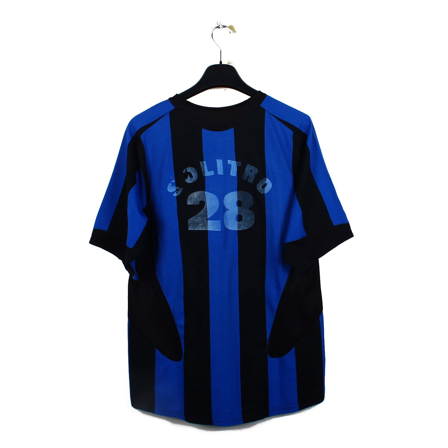 Histoire : Maillot domicile porté par les joueurs de Roberto Mancini lors de la fameuse saison du Calciopoli où les Intéristes finiront champion suite à la relégation de la Juve. L'Inter fera donc le doublé Championnat/Coupe nationale en remportant la finale face à la Roma de Totti (4-2 score cumulé).