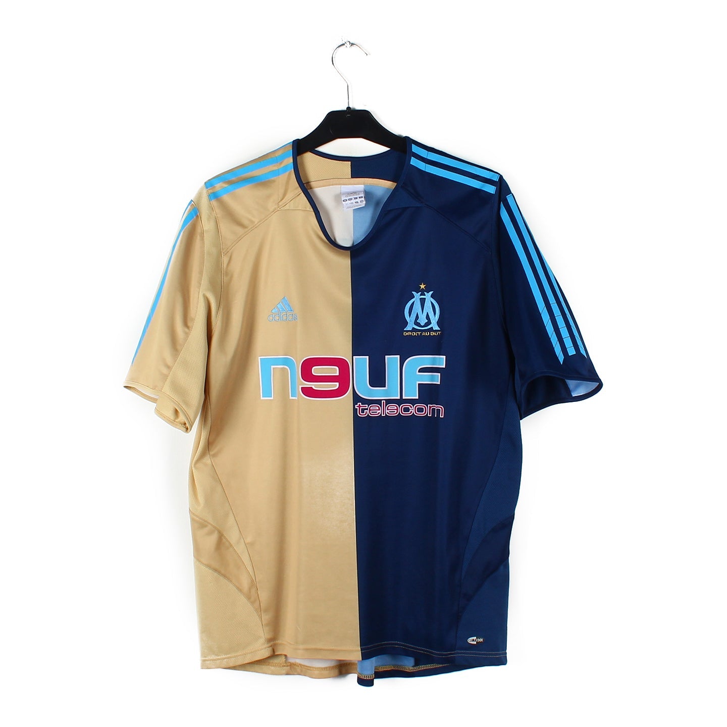 Histoire : Maillot third porté lorsque les hommes de Jean Fernandez termineront 5ème de Ligue 1, permettant au club de se qualifier pour la Coupe Intertoto. Le club phocéen se hissera également en finale de Coupe de France, vaincu 2-1 par le Paris Saint Germain.