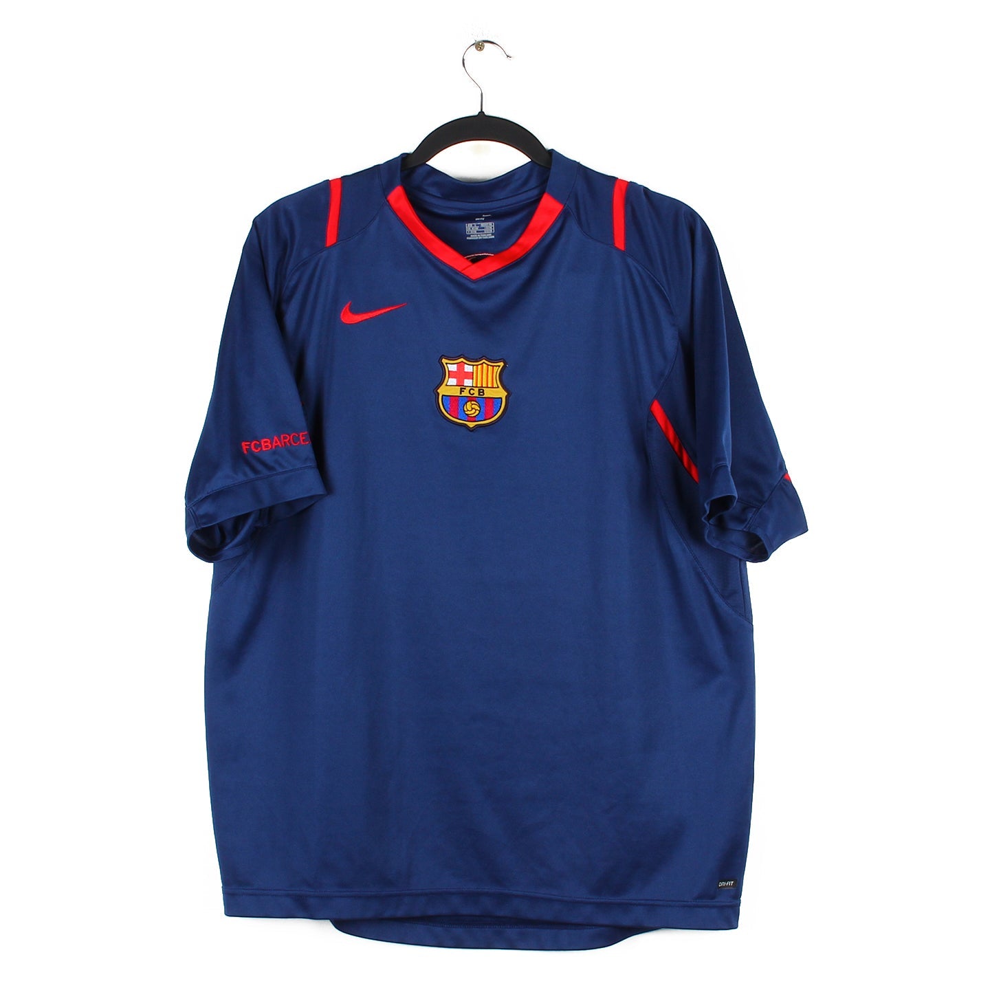 Histoire : Maillot d'entraînement porté lors d'une saison qui verra les hommes de Rijkaard se faire devancer par le Real à la différence de buts particulières. Malgré les 24 buts de Ronaldinho toutes compétitions confondues, les Barcelonais devront uniquement se contenter de la Supercoupe d'Espagne.