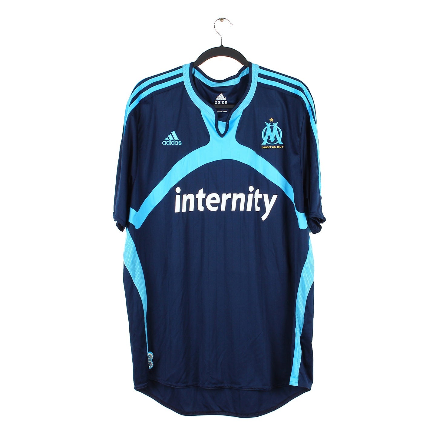 Histoire : Maillot third porté par l'Olympique de marseille, présidé à l'époque par Pape Diouf, lors d'une saison où le club terminera second de Ligue 1. L'équipe atteindra également la finale de la Coupe de France, vaincu par Sochaux aux tirs aux but.