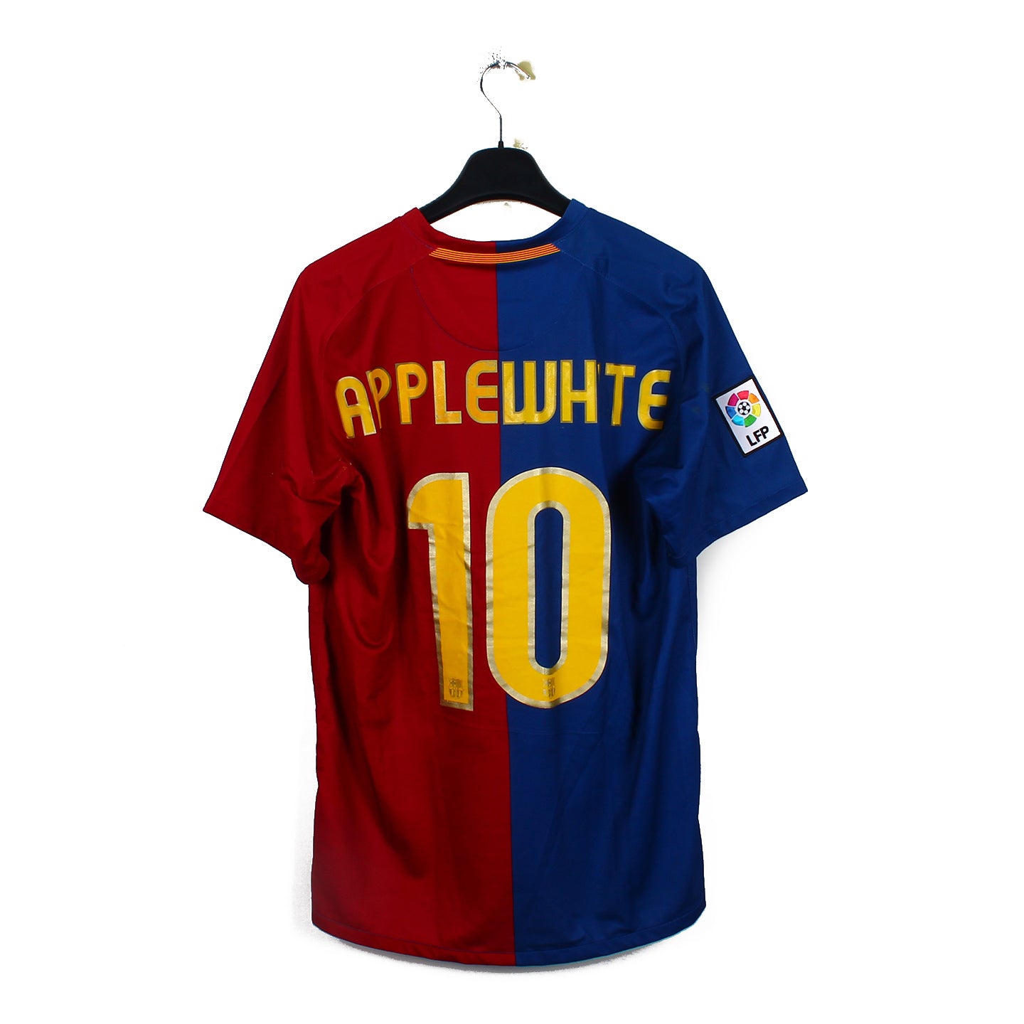 Histoire : Maillot domicile porté par les catalans lors d'une saison exceptionnelle où Pep Guardiola et ses hommes réaliseront le triplé Liga-Copa Del Rey-Champions League, bien aidés par Messi et Eto'o qui inscriront respectivement 38 et 36 buts toutes compétitions confondues.