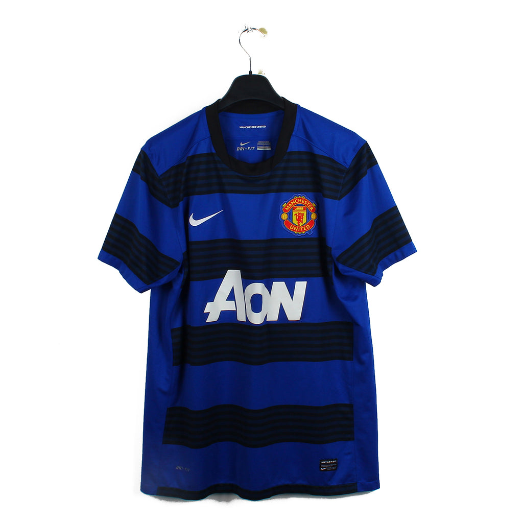 Histoire : Maillot extérieur porté sous l'ère Sir Alex Ferguson lors d'une saison assez compliquée où ses hommes gagneront uniquement le Community Shield. Fameuse année où le but d'Aguero dans les dernières secondes briseront les rêves de titre des Red Devils, pourtant à égalité de point avec les Citizens.
