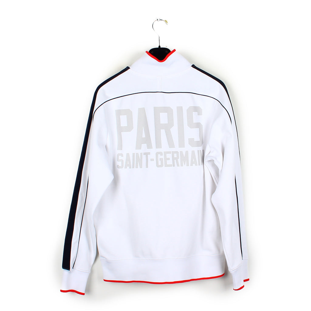 Histoire : Veste de survêtement portée par les hommes d’Antoine Kombouaré lors de la première saison sous l’ère qatarie du PSG. Paris terminera deuxième de Ligue 1. Carlo Ancelotti prendra le relai le 30 décembre 2011. Sirigu et Pastore rejoindront le club et marqueront le début d’une nouvelle ère.