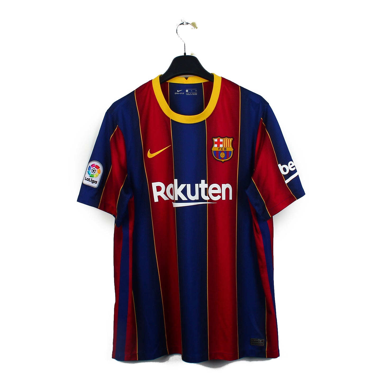 Histoire : Maillot domicile porté par les hommes de Ronald Koeman lors d'une saison à un unique titre : la coupe du Roi gagnée face à l'Athletic Bilbao en finale. Les Blaugrana termineront 3ème de Liga et se feront éliminés par le PSG en huitièmes de finale de la Ligue des Champions, et cela malgré les 38 buts de Messi.