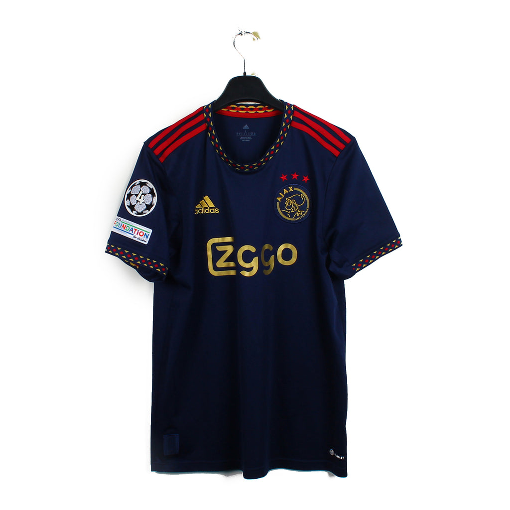 Histoire : Maillot extérieur porté lors d'une saison durant laquelle les hommes d'Eric Ten Hag écraseront le championnat. Seulement 2 défaites et 102 buts inscrits pour 23 encaissées.