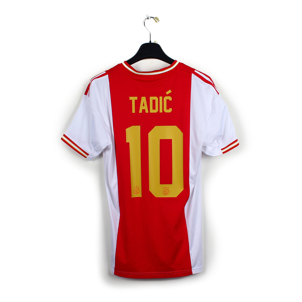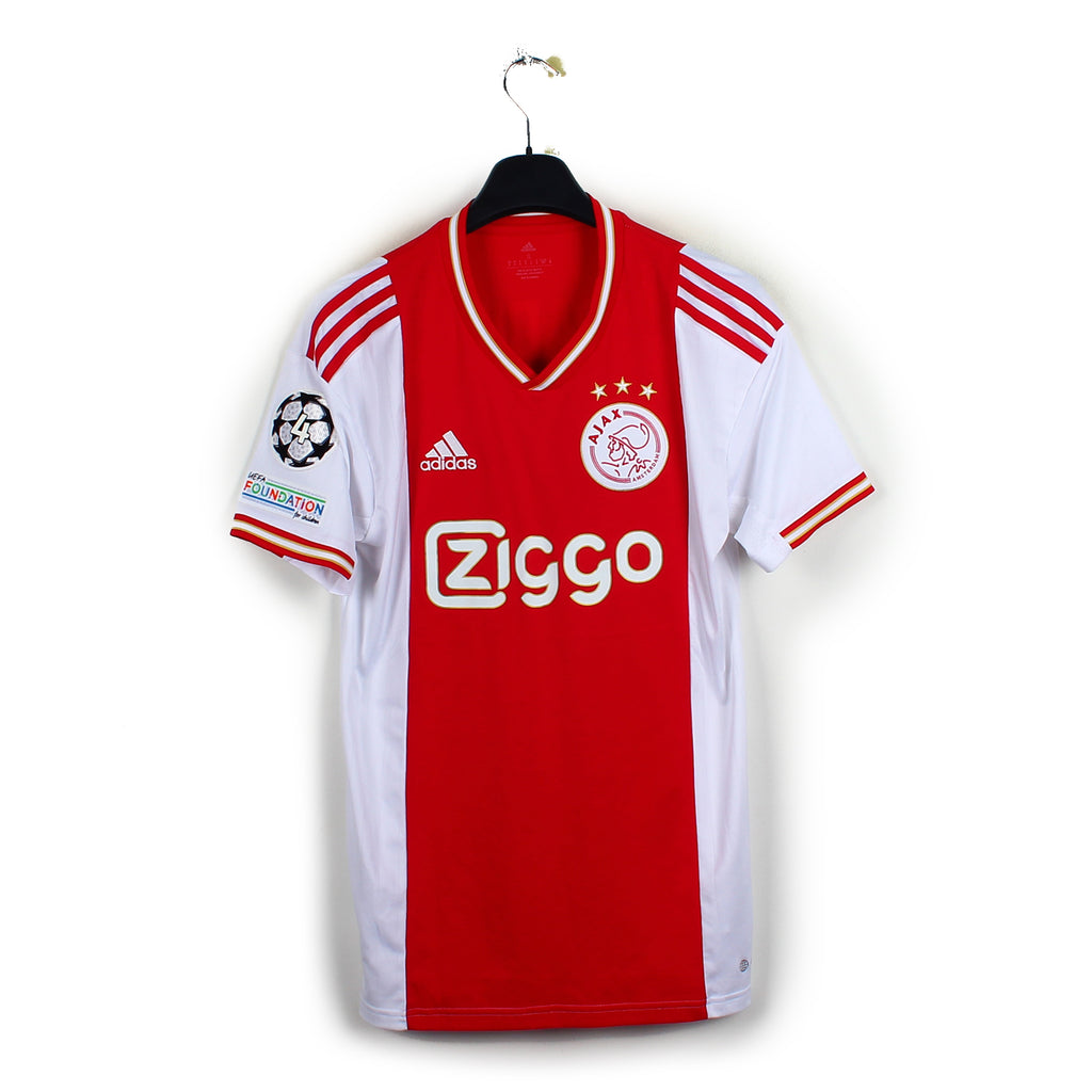 Histoire : Maillot domicile porté lors d'une saison durant laquelle les hommes d'Eric Ten Hag écraseront le championnat. Seulement 2 défaites et 102 buts inscrits pour 23 encaissées.
