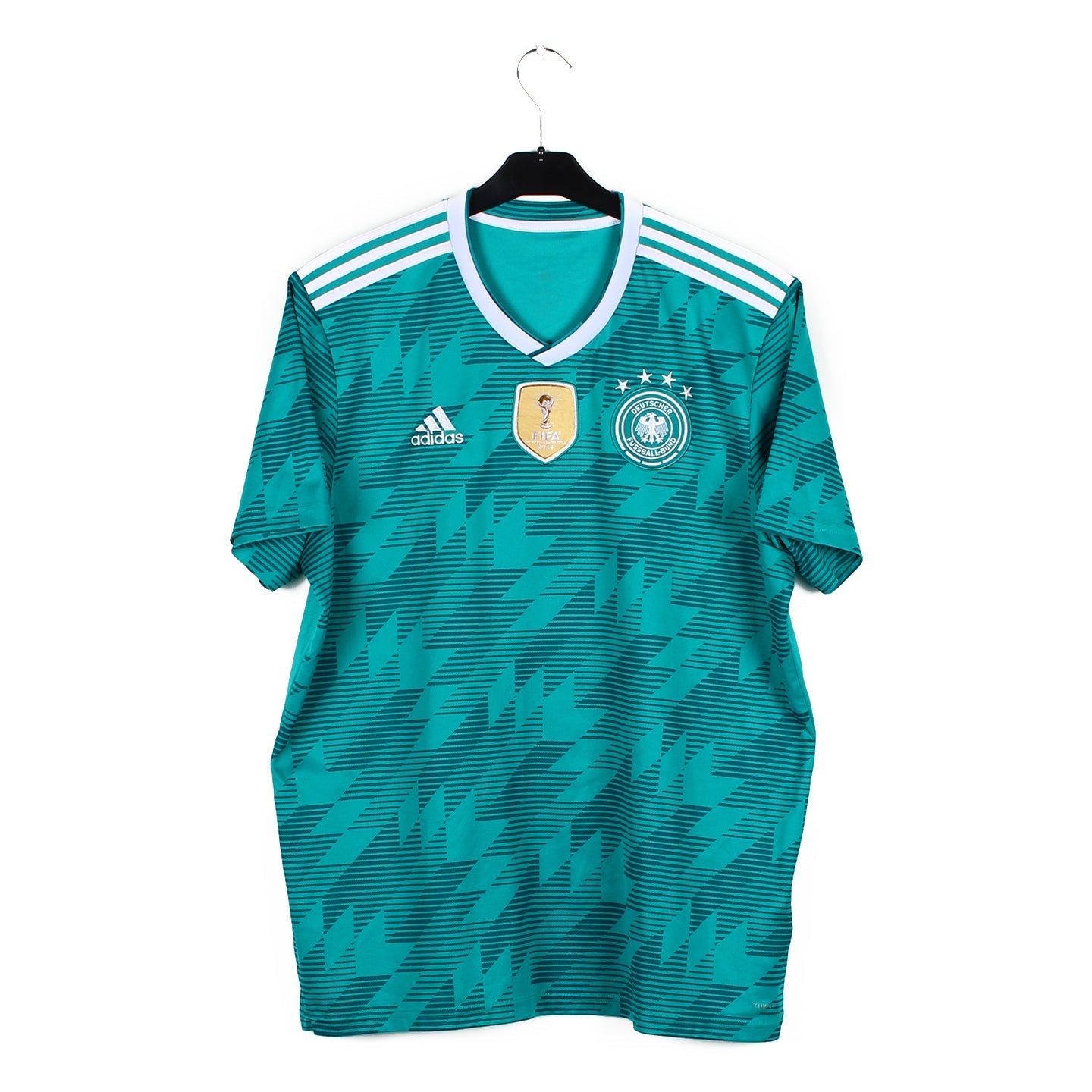 Histoire : Maillot extérieur porté par les Allemands lors de la Coupe du Monde 2018 en Russie où la Manschaft ne parviendra pas à défendre son titre. Joachim Löw et ses hommes seront éliminés dès la phase de groupe, avec notamment une défaite surprise face à la Corée du Sud.