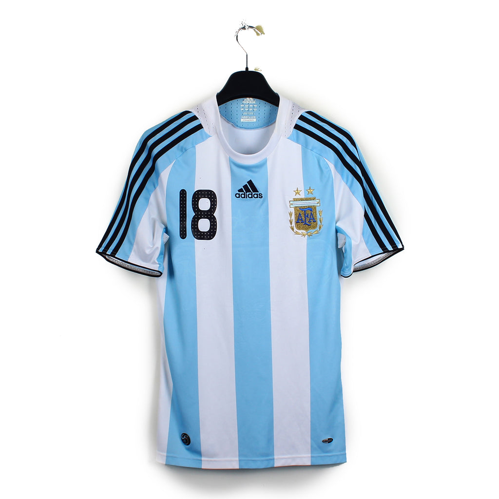 Histoire : Maillot domicile porté par l'Argentine durant la Copa América 2007 organisée sur ses terres. Les coéquipiers de Léo Messi atteindront la finale, où ils seront surclassé par le Brésil (3-0).