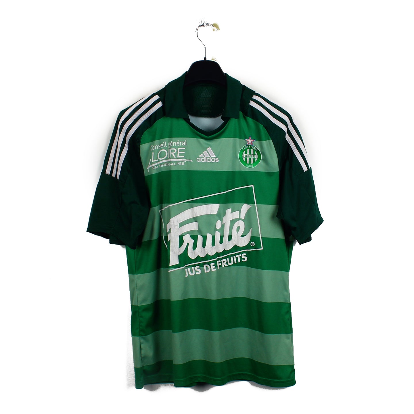 Histoire : Maillot third porté lors d'une deuxième saison consécutive à la 17ème place pour l'ASSE, évitant à nouveau la relégation. Christophe Galtier prendra les commandes de l'équipe à la place d'Alain Perrin.