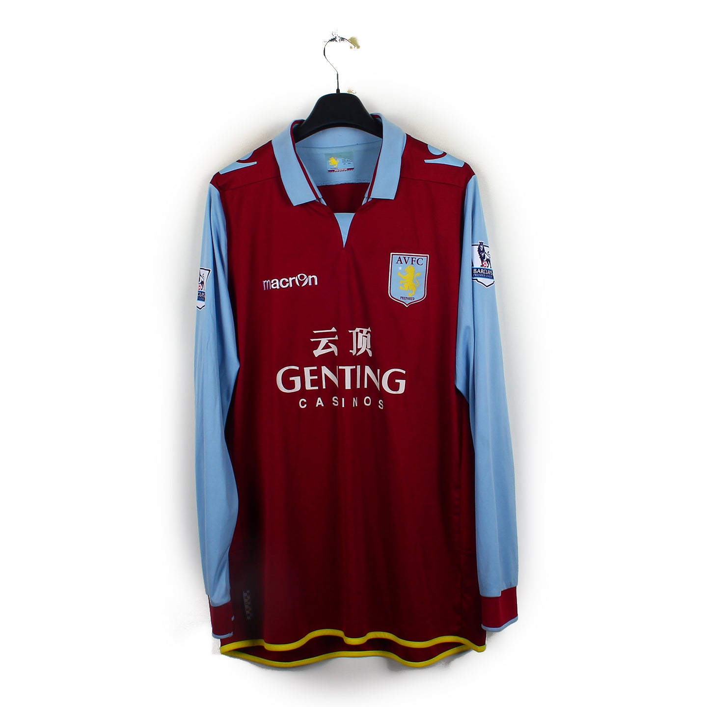 Le maillot en détail : Maillot manches longues dans un excellent état. Les logos brodés sont nickels, tout comme les logos Macron floqués sur les épaules et le sponsor.