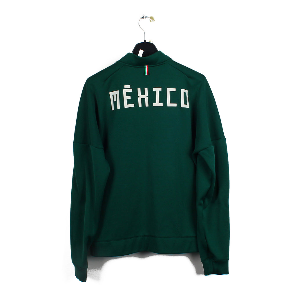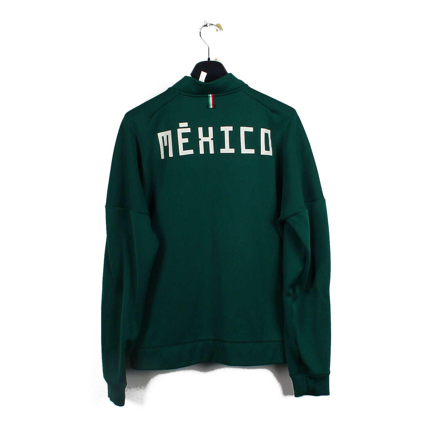 Histoire : Maillot domicile porté par les mexicains lors de la Coupe du Monde 2018 en Russie. Edition durant laquelle l'équipe, sous le capitanat de Guardado, se qualifiera pour les huitièmes de finale dans le groupe de la mort où l'Allemagne sera notamment éliminée. Leur parcours s'arrêtera après une défaite 2-0 face au Brésil de Neymar en huitième de finale.