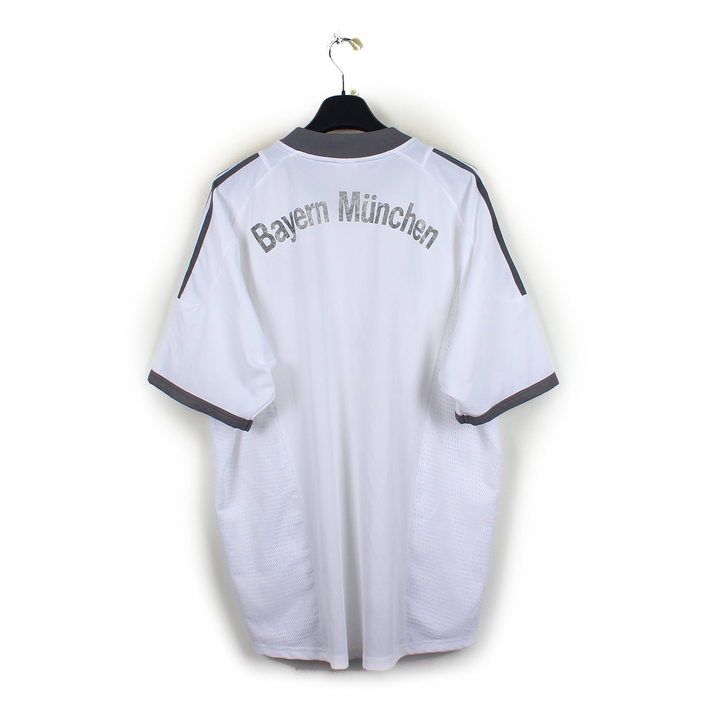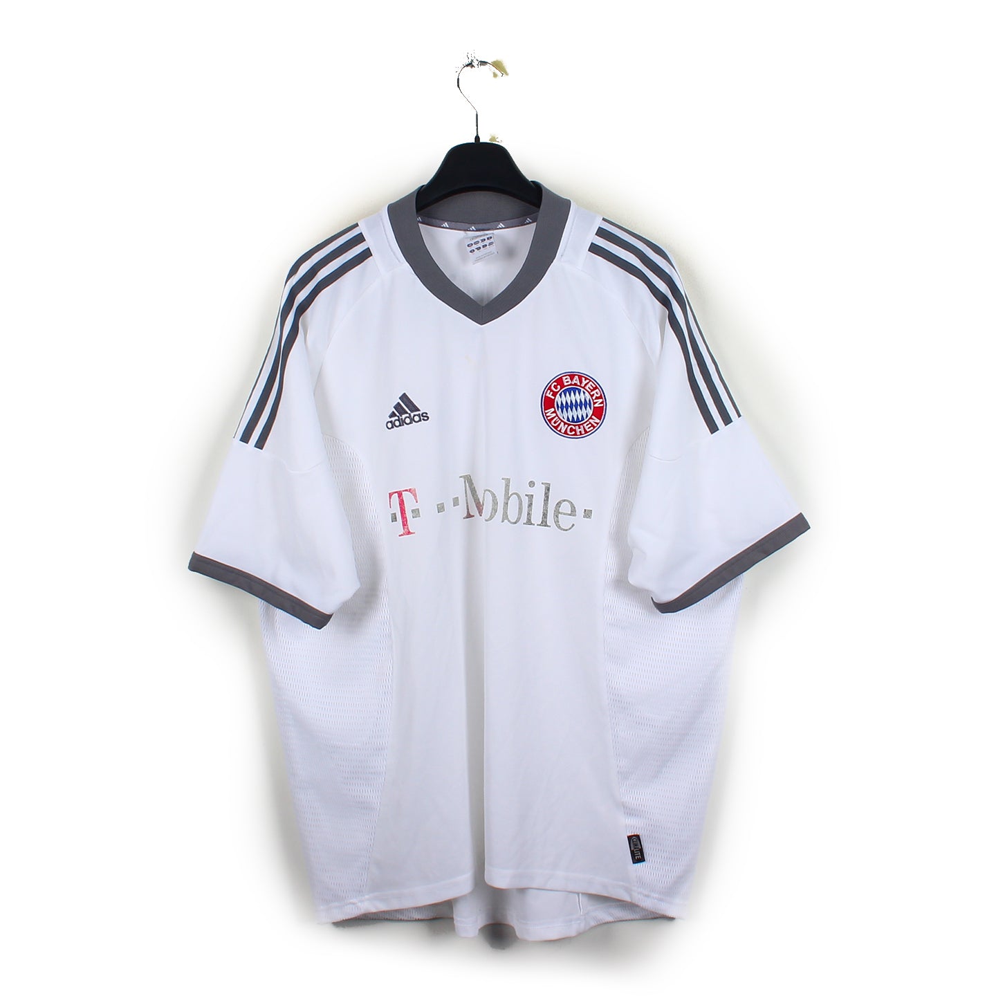 Histoire : Maillot extérieur porté par les hommes d’Ottmar Hitzfeld lors d’une saison réussie. Les Bavarois mettront fin à une année blanche en remportant la Bundesliga et la Coupe d’Allemagne. Le club préparera un mercato exceptionnel en recrutant Ballack, Zé Roberto, ou encore Sebastian Deisler. Le Bayern sera aussi porté par un grand Oliver Kahn, sacré meilleur joueur du Mondial 2002.