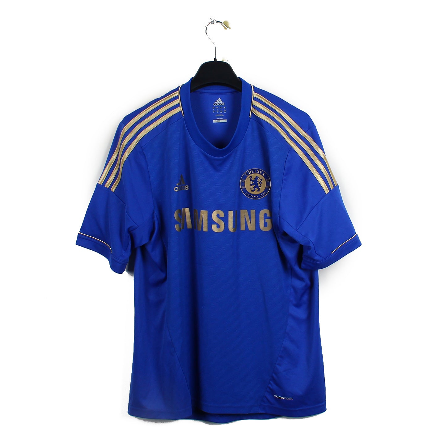 Histoire : Maillot domicile porté sous les ordres Rafa Bénitez. Les Blues seront vainqueurs de la Ligue Europa en plus de finir 3ème du championnat. Juan Mata jouera un rôle décisif dans cette magnifique saison avec 33 passes décisives (!) délivrés toutes compétitions confondues dont 17 en championnat.