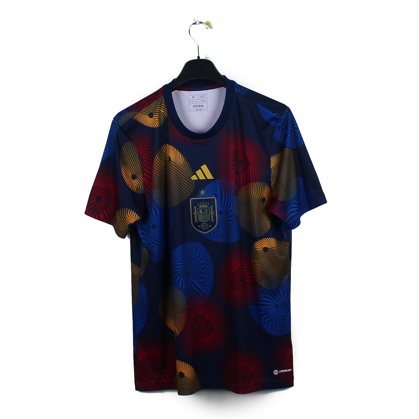 Histoire : Maillot d'entrainement porté par les Espagnols lors de la Coupe du Monde 2022 où ils sortiront en 8ème de finale contre le Maroc aux tirs au but.