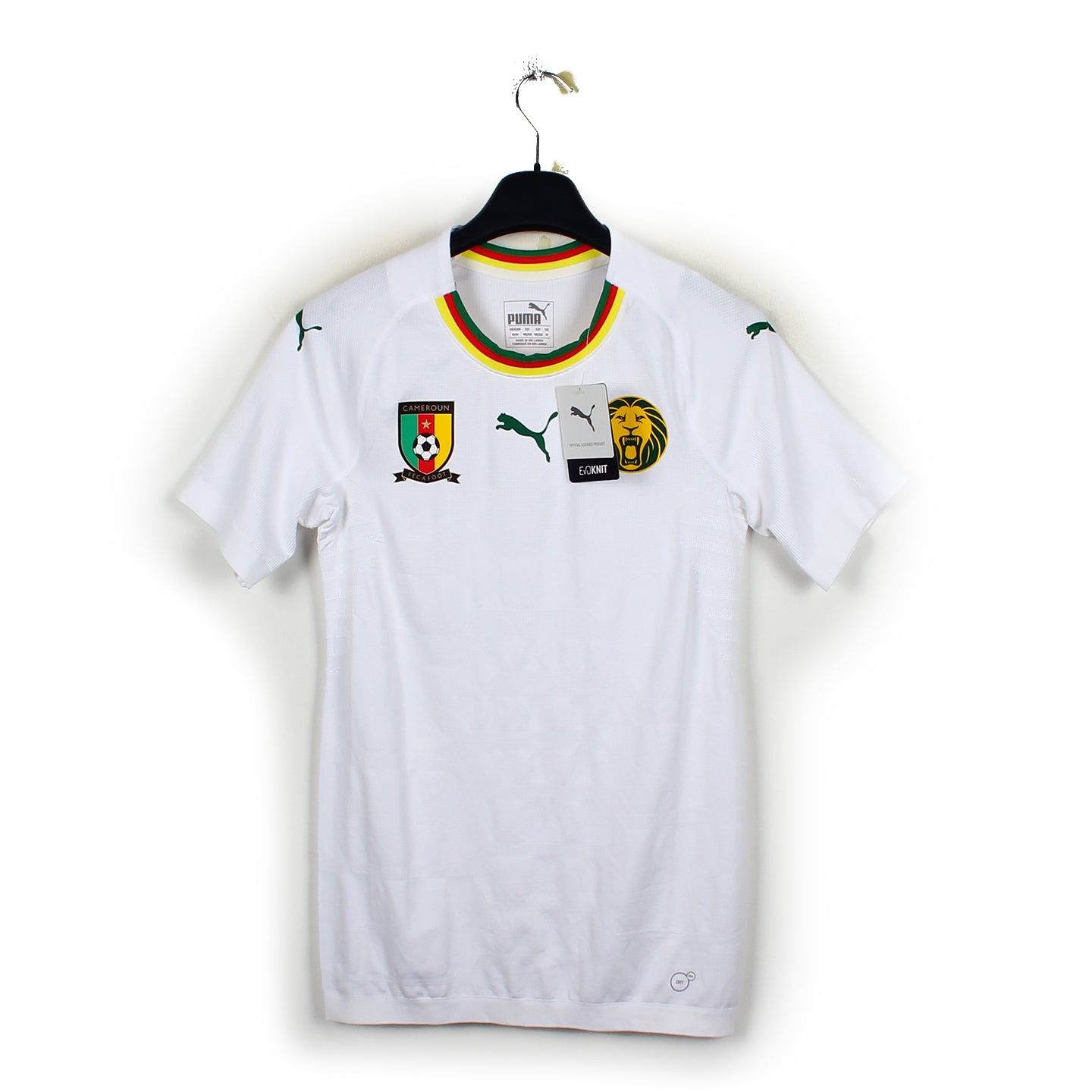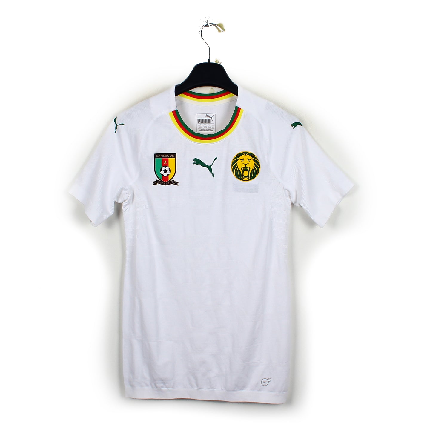 Histoire : Maillot extérieur porté par les camerounais lors des qualifications à la CAN 2019. Ils finiront 2ème de leur groupe derrière le Maroc et se qualifieront pour la compétition.