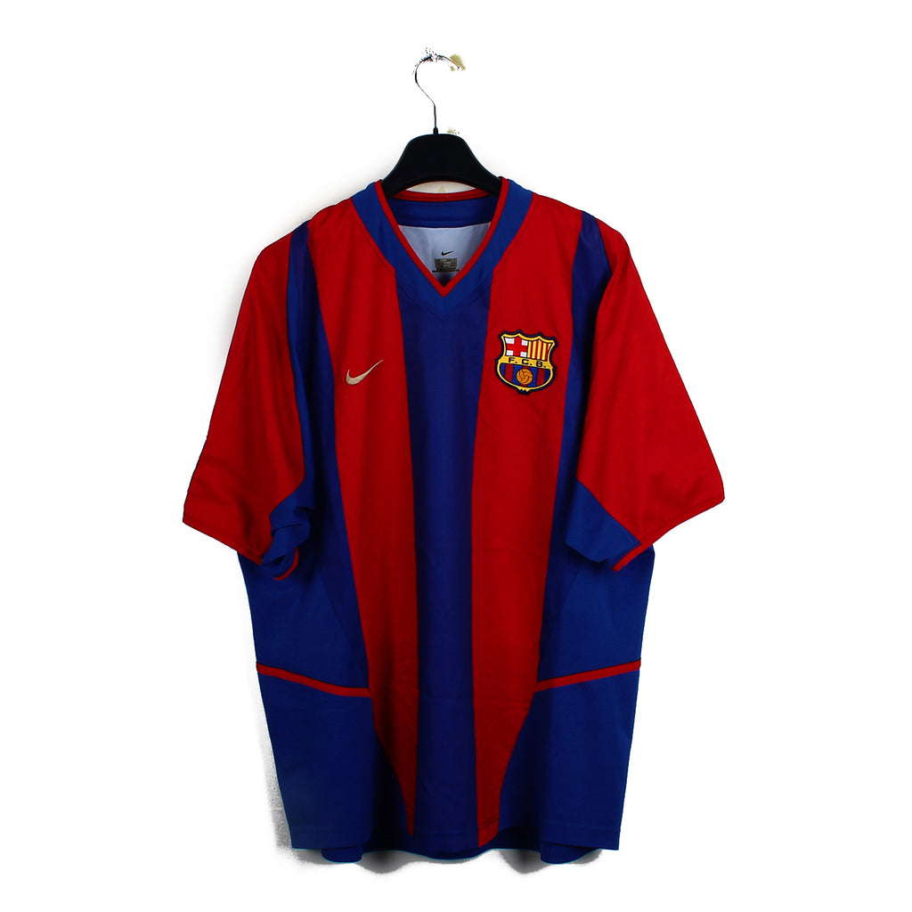 Le maillot en détail : Maillot aux couleur traditionnelles blaugrana en super état sur la face. Au dos un flocage a laissé des traces.