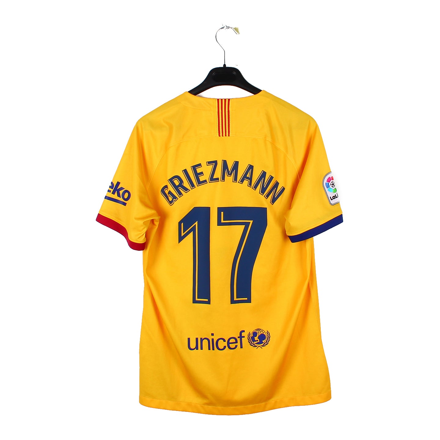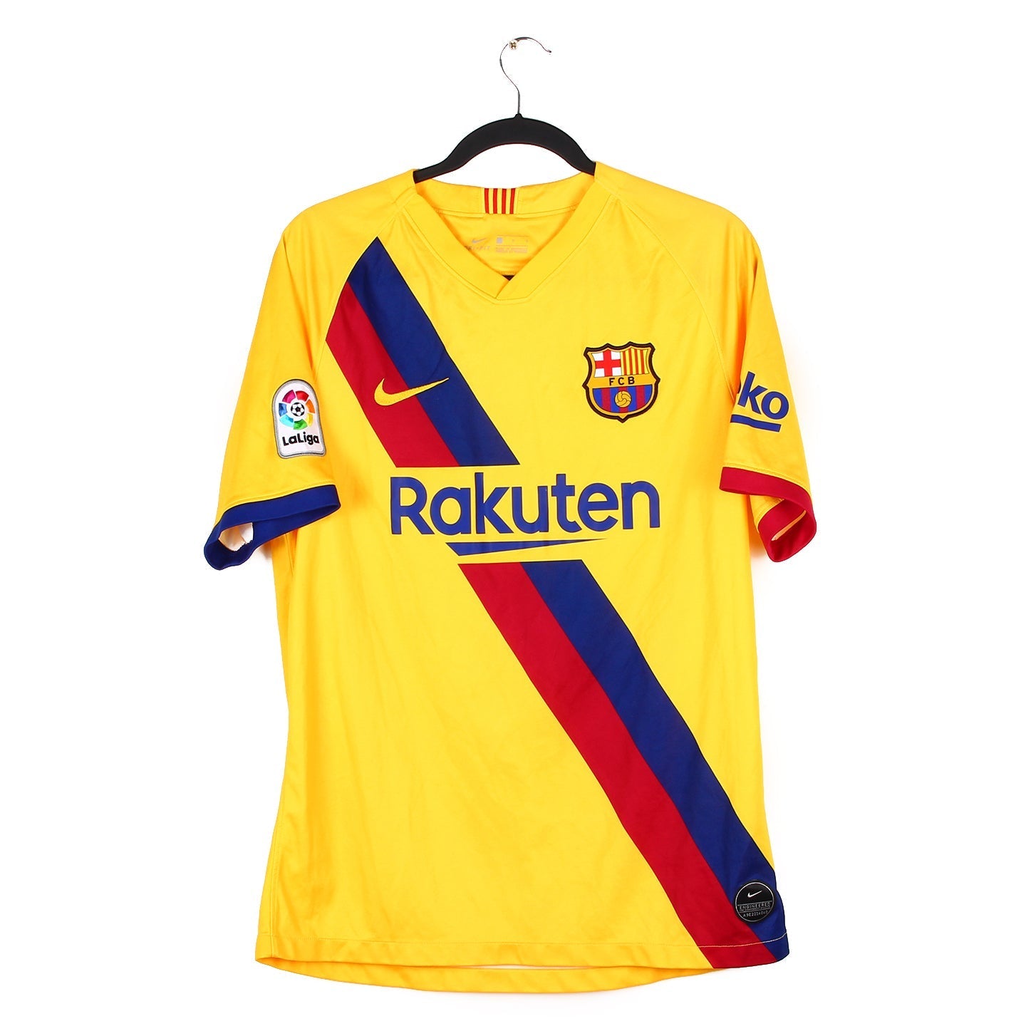 Histoire : Maillot extérieur porté par les hommes de Quique Setién une saison où il termineront second du championnat avec un total de 82 points, 5 unités derrière le Real Madrid. En Europe, après une phase de poule passée avec succès, les coéquipiers de Léo Messi seront écrasés par le Bayern Munich en concédant une lourde défaite 8-2 sur l'ensemble des deux rencontres.