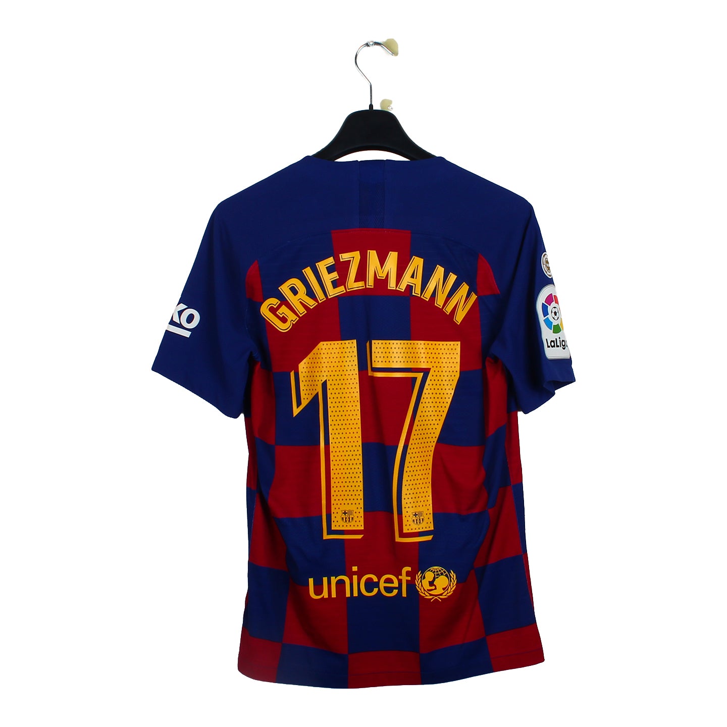 Histoire : Maillot domicile porté par les hommes de Quique Setién une saison où il termineront second du championnat avec un total de 82 points, 5 unités derrière le Real Madrid. En Europe, après une phase de poule passée avec succès, les coéquipiers de Léo Messi seront écrasés par le Bayern Munich en concédant une lourde défaite 8-2 sur l'ensemble des deux rencontres.