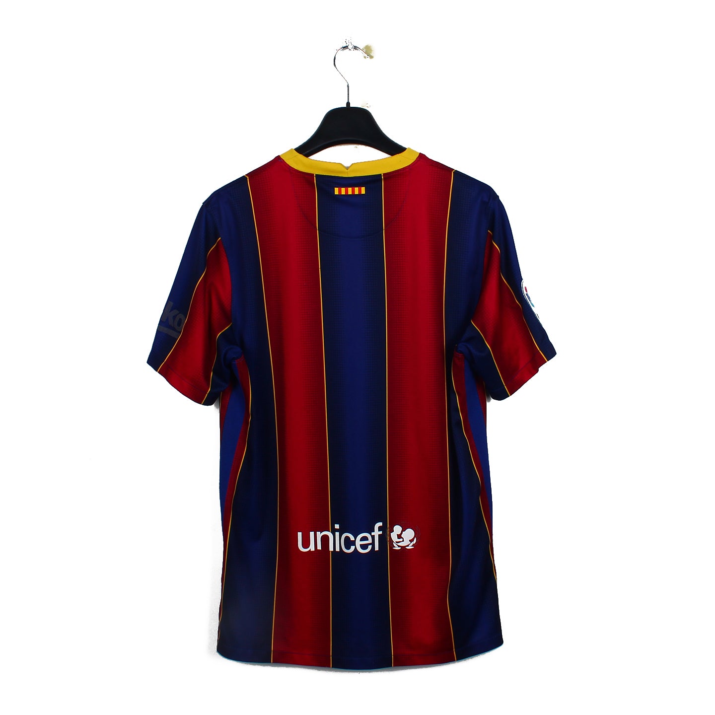 Histoire : Maillot domicile porté par les hommes de Ronald Koeman lors d'une saison à un unique titre : la coupe du Roi gagnée face à l'Athletic Bilbao en finale. Les Blaugrana termineront 3ème de Liga et se feront éliminés par le PSG en huitièmes de finale de la Ligue des Champions, et cela malgré les 38 buts de Messi.
