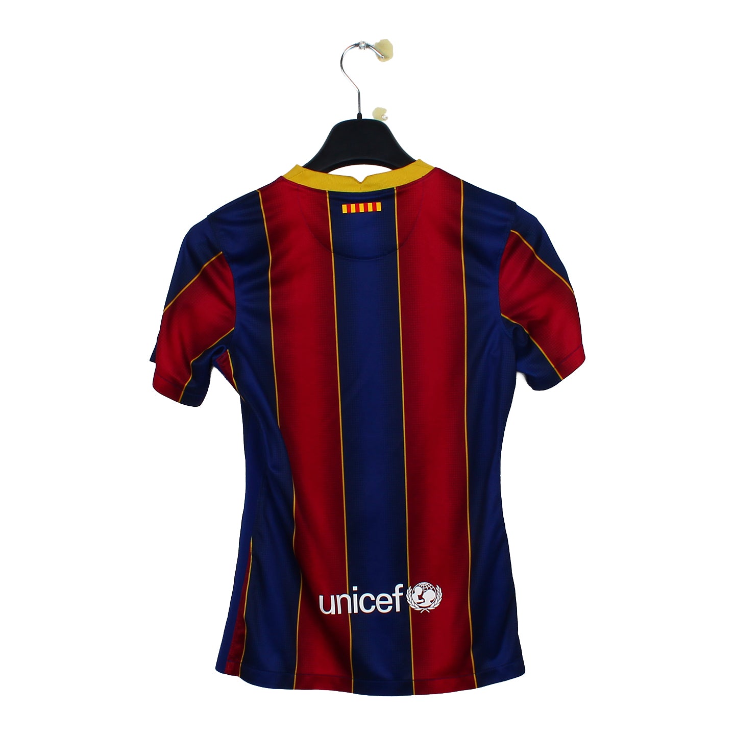 Histoire : Maillot domicile porté par les hommes de Ronald Koeman lors d'une saison à un unique titre : la coupe du Roi gagnée face à l'Athletic Bilbao en finale. Les Blaugrana termineront 3ème de Liga et se feront éliminés par le PSG en huitièmes de finale de la Ligue des Champions, et cela malgré les 38 buts de Messi.