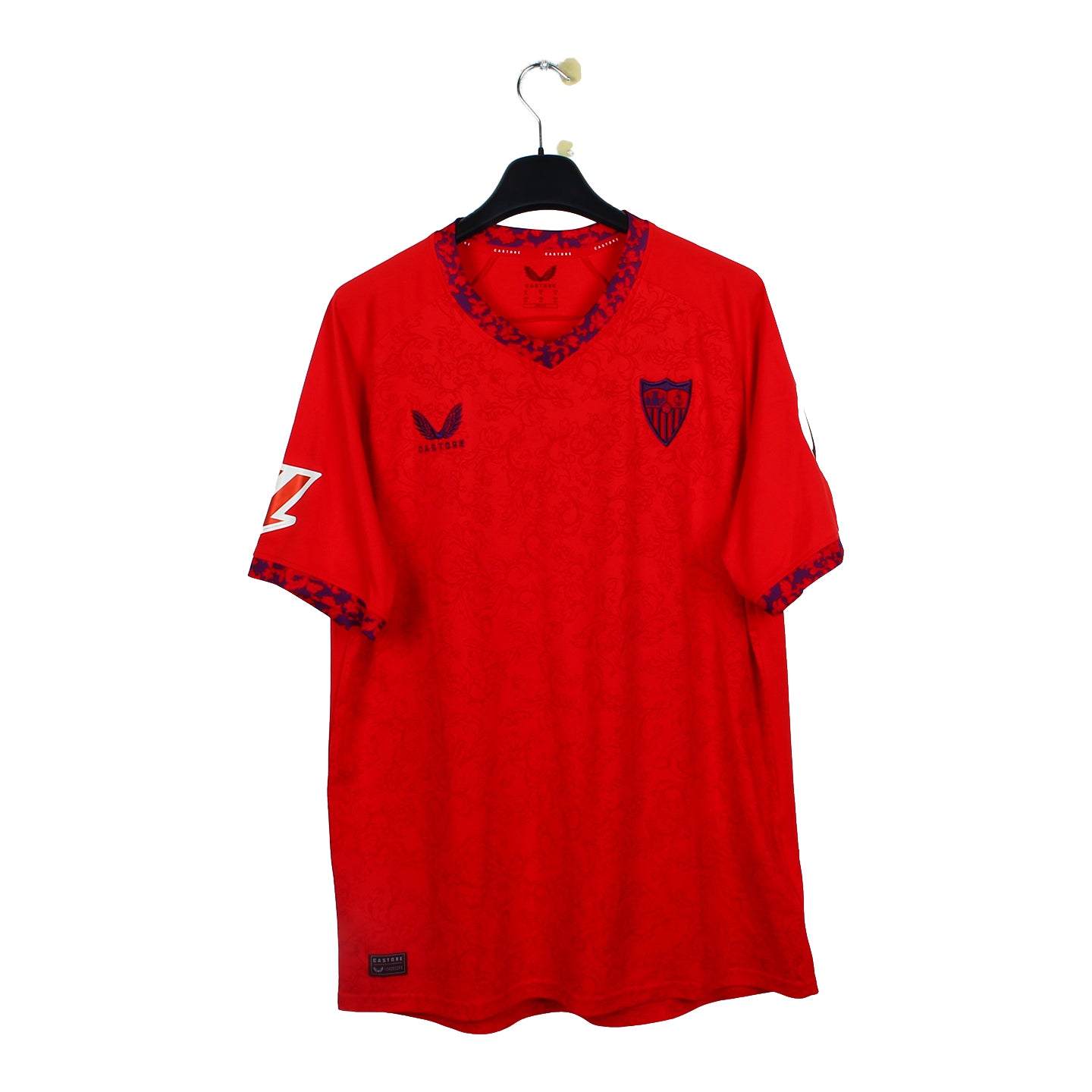 Le maillot en détail : Maillot porté par Loic Badé face à l'Espanyol Barcelone dans une excellente conservation. Victoire 2-0 à l'extérieur. Signature du joueur dans le numéro au dos.
