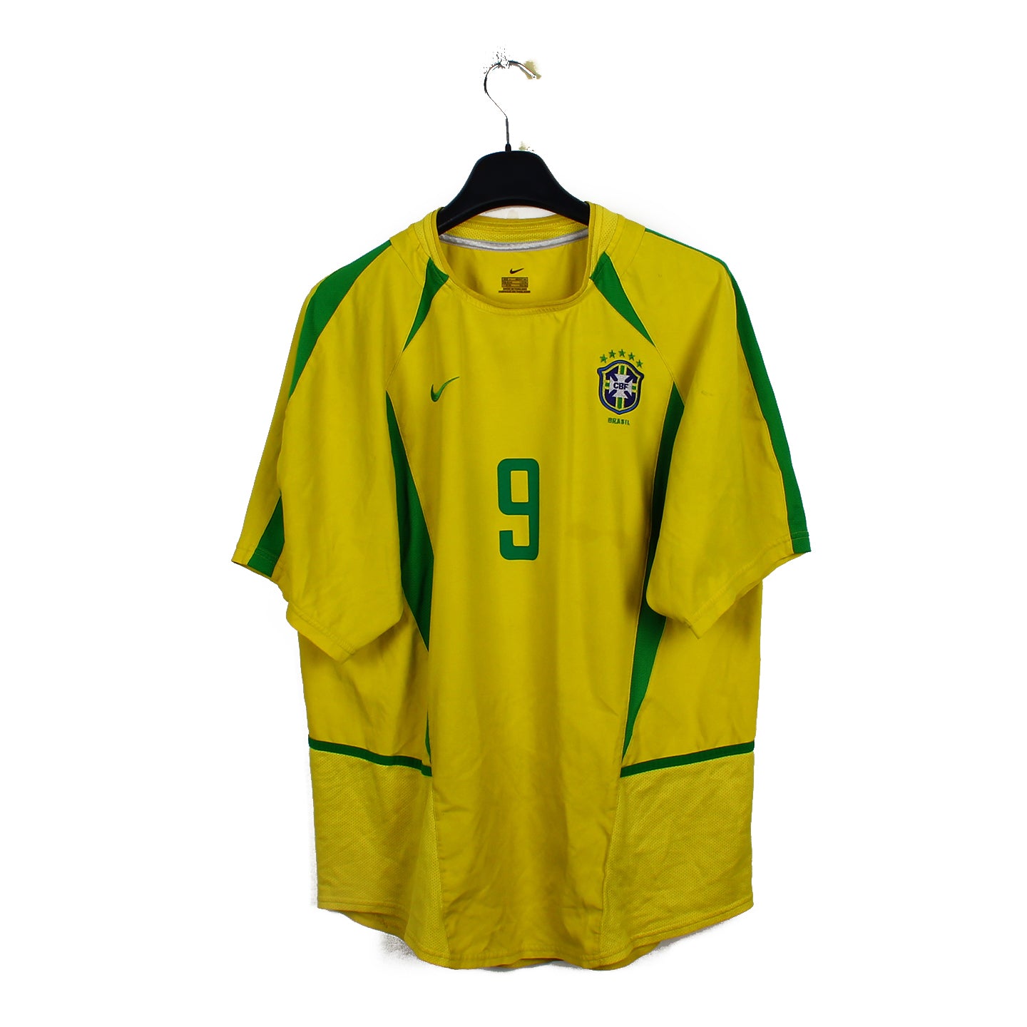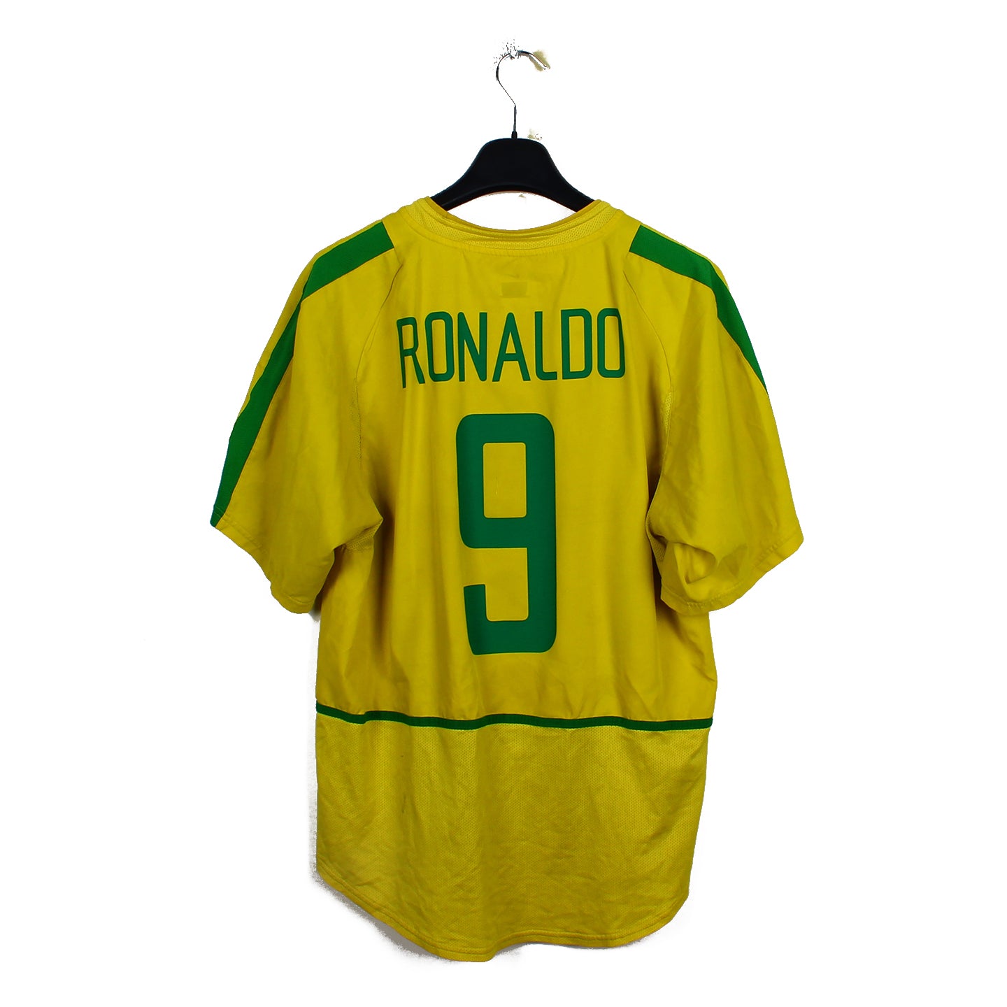 Histoire : Maillot domicile porté lors du sacre de champion du monde de la Seleção à l'occasion de l'édition 2002 organisée entre le Japon et la Corée du Sud. Ronaldo portera les siens, terminant meilleur buteur de la compétition avec 8 buts, en finissant sur un doublé en finale face à l'Allemagne.