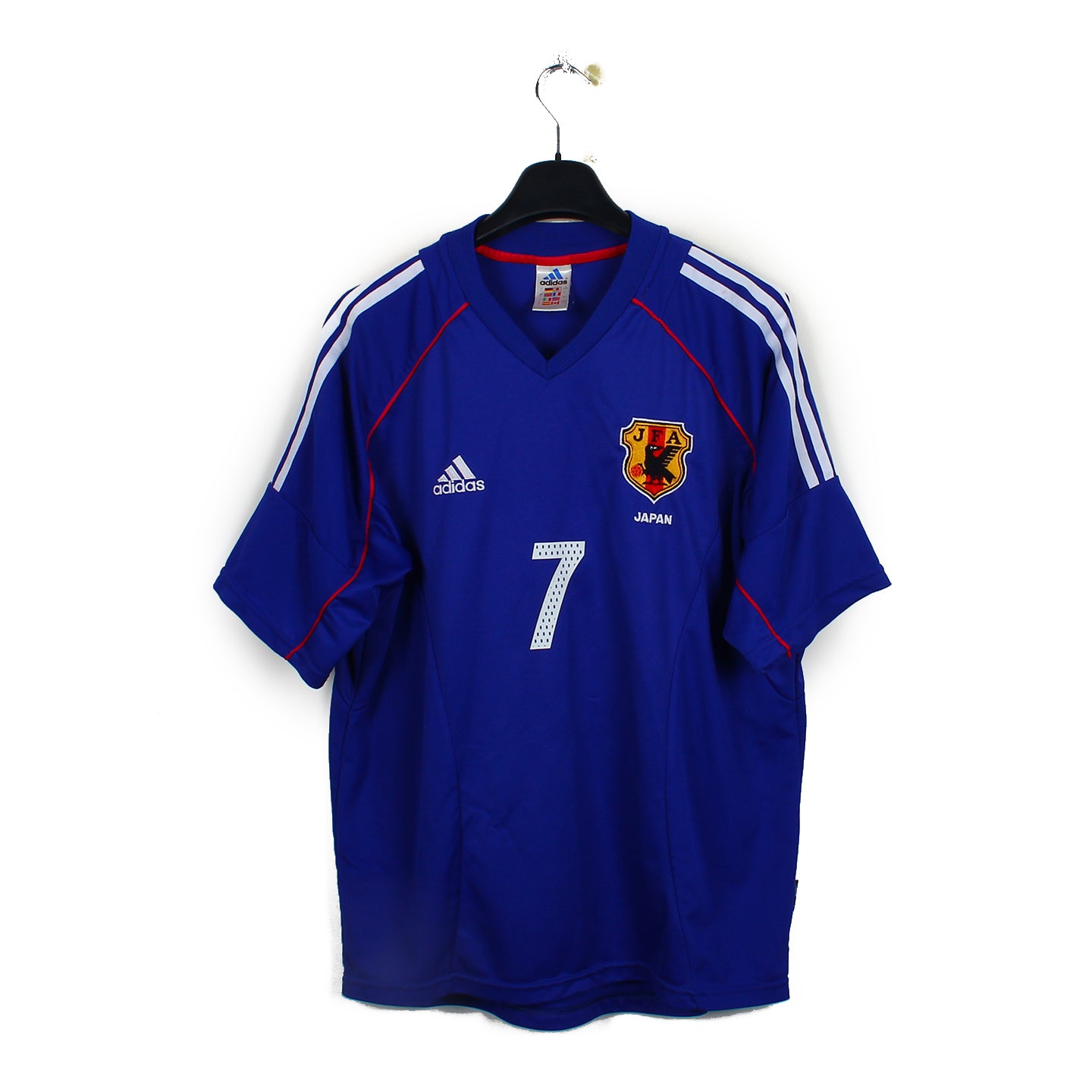 Histoire : Maillot domicile porté lorsque le Japon co-organisa la Coupe du Monde avec la Corée de Sud. Edition où ils atteindront pour la première fois de leur histoire le second tour de la compétition, éliminés en huitièmes par le futur troisième turque.