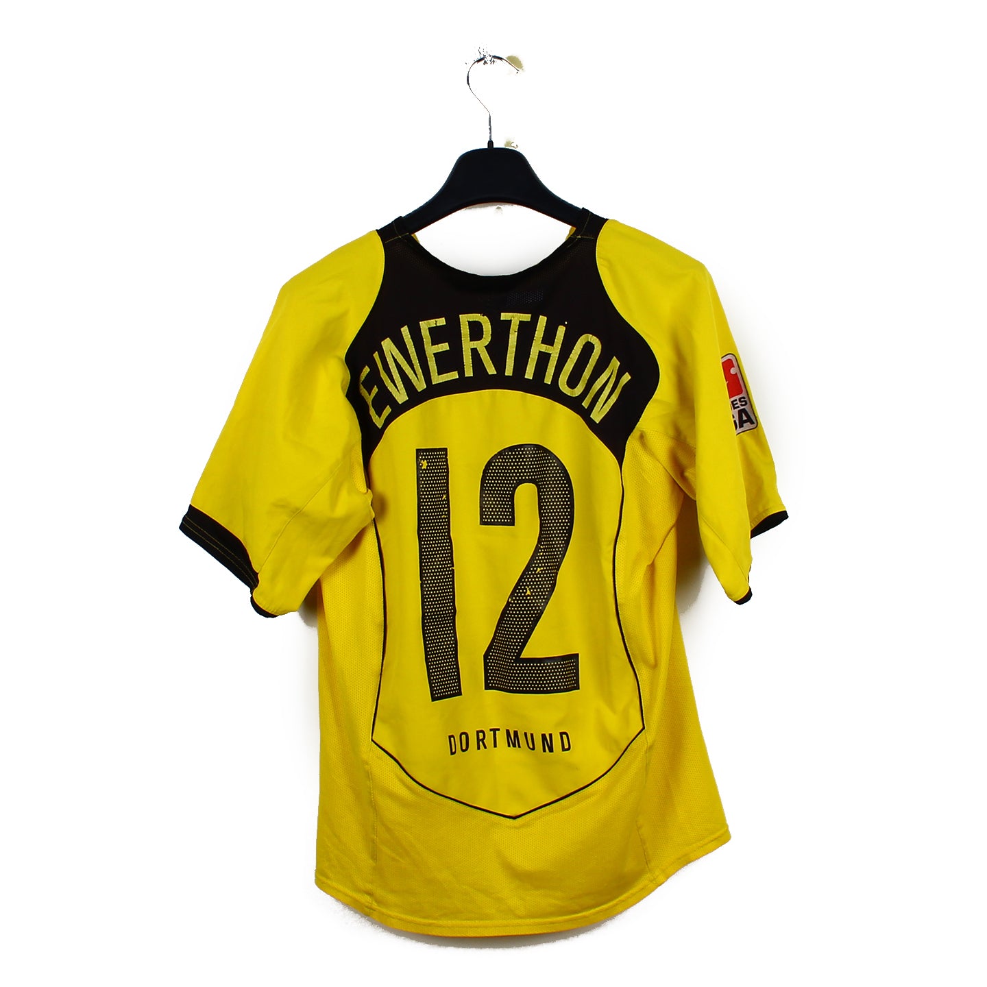 Histoire : Maillot domicile porté par le Borussia Dortmund sous Bert van Marwijk lors d'une saison où ses hommes finiront à la 7ème place, à seulement 4 points du podium et de la Ligue des Champions. Cette place sera donc synonyme de Coupe Intertoto pour le Borussia !
