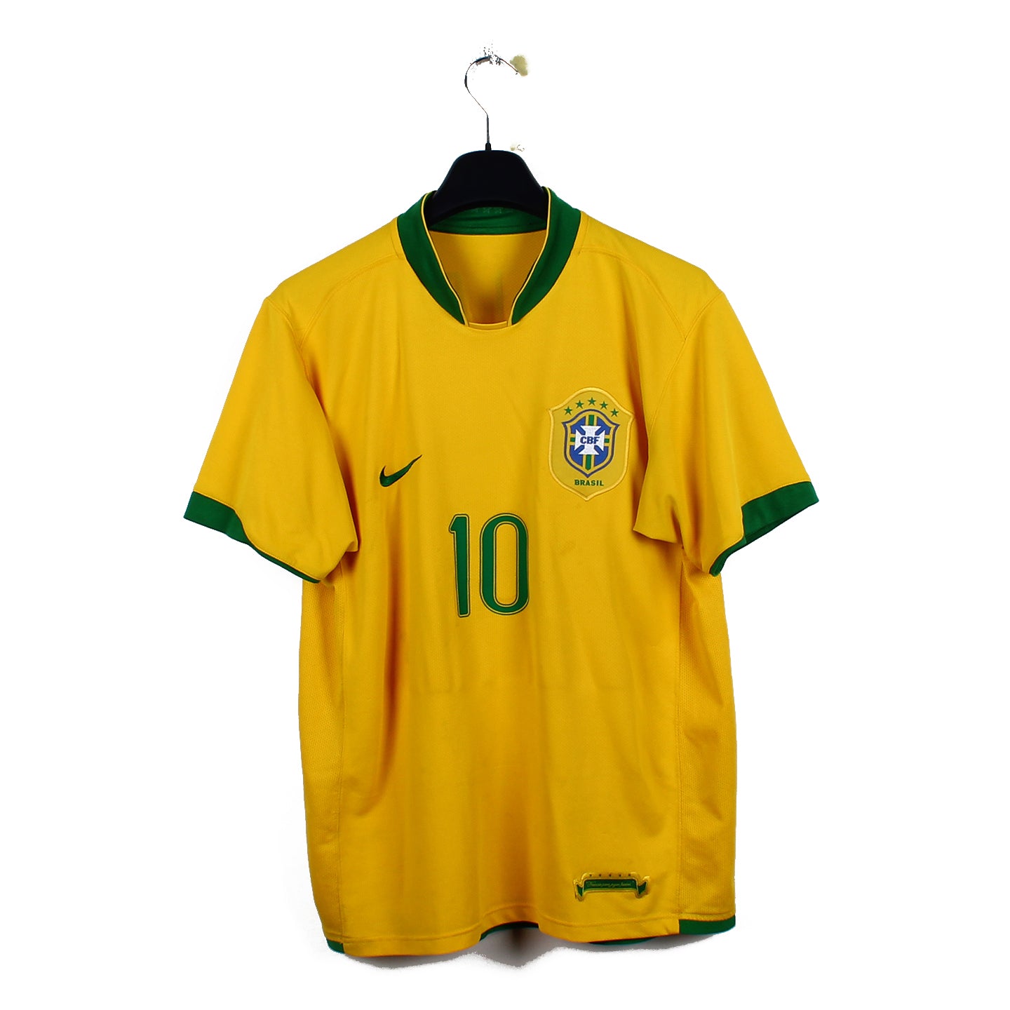 Histoire : Maillot domicile porté par la Seleção durant le mondial 2006 organisé en Allemagne. Le Brésil se verra éliminé en quart par l'Equipe de France malgré un incroyable Ronaldo devenu recordman du nombre du but en Coupe du Monde.