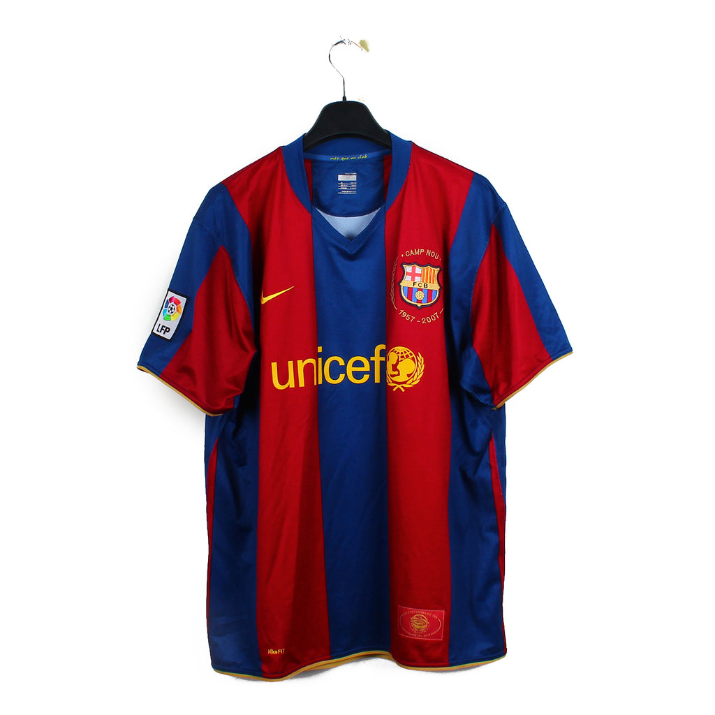 Histoire : Maillot domicile lors de la dernière saison de Rijkaard's à la tête de l'équipe. Le Barca ne parviendra pas à remporter le championnat, survolé par le Real Madrid. Sur la scène européenne les catalans seront éliminés en demi-finale, face au futur champion Manchester United.