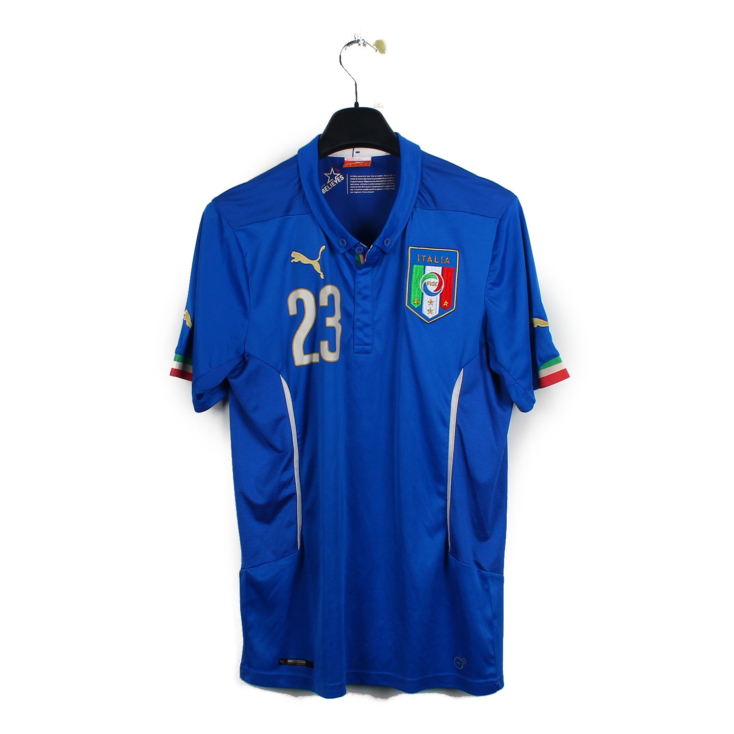Histoire : Maillot domicile porté par les hommes de Cesare Prandelli lors de la Coupe du Monde 2014 au Brésil. Une pauvre troisième place mettra fin au parcours des quadruples champions du monde.