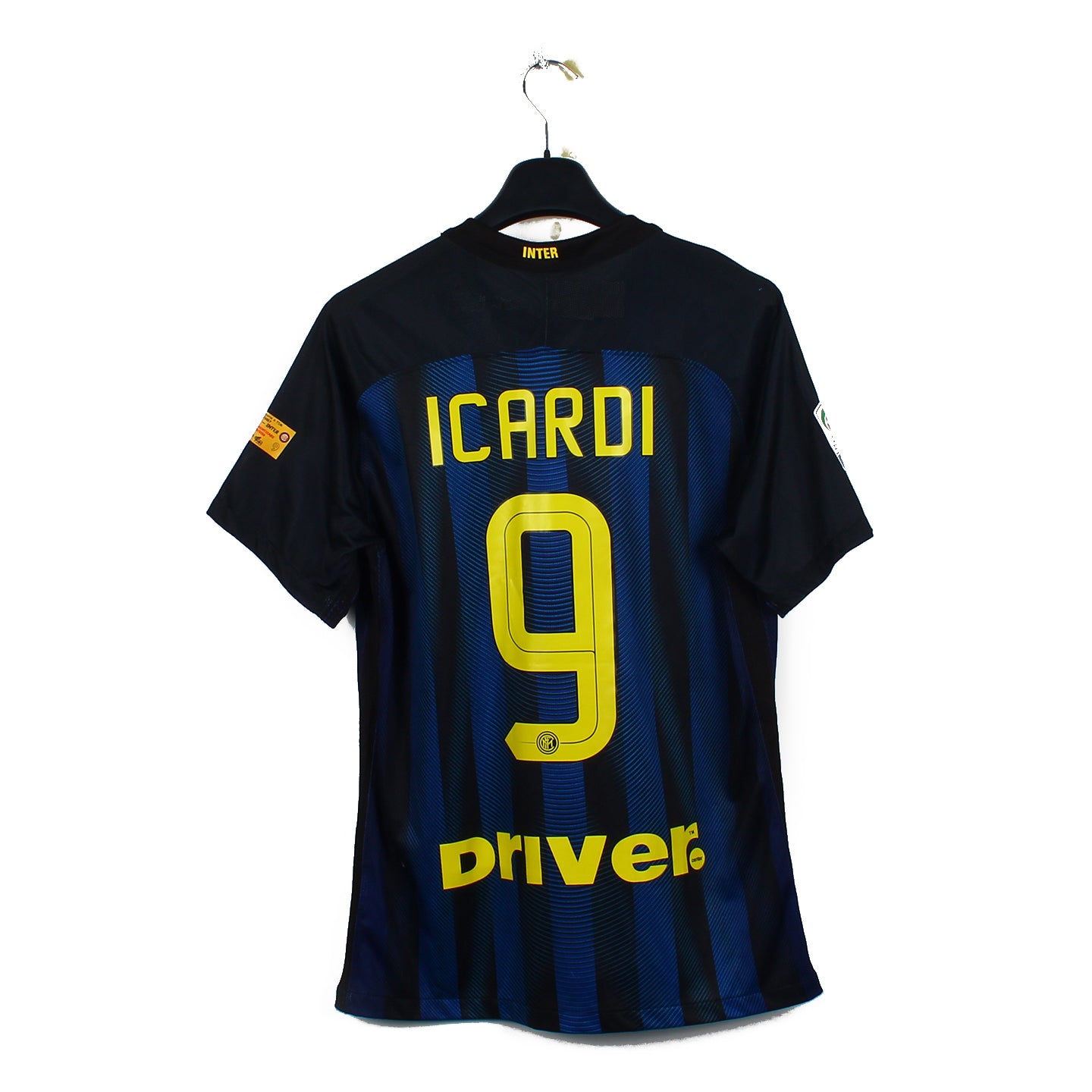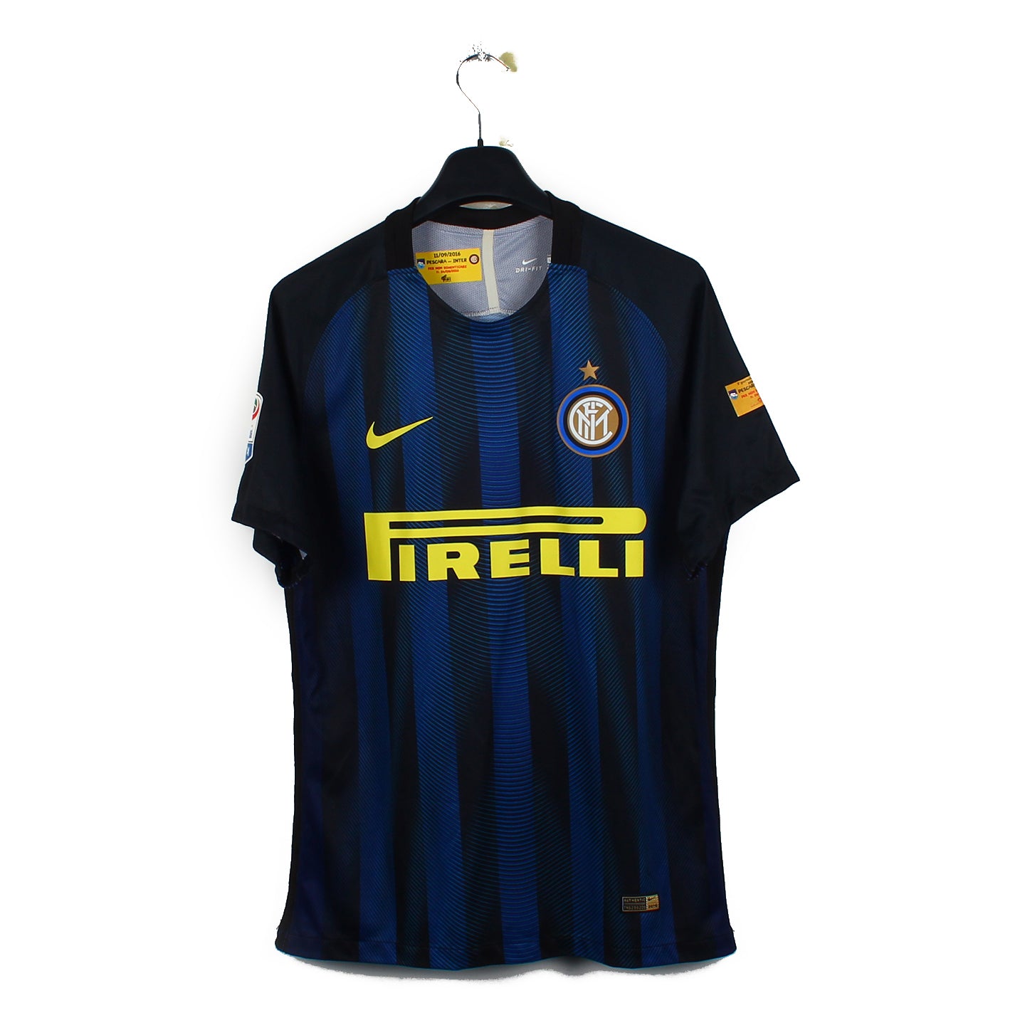 Histoire : Maillot domicile porté par les intéristes lors d'une saison compliquée avec 3 changements d'entraîneurs. Mauro Icardi portera son équipe avec 24 buts en championnat, ce qui ne sera pas suffisant pour accrocher les places européennes, l'Inter finira 7ème à un point de son ennemi milanais, dernier qualifié pour l'Europe.