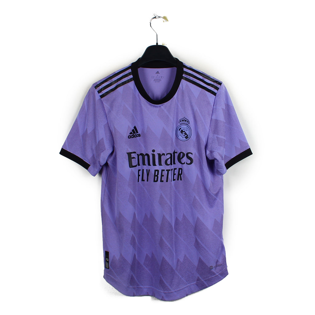 Histoire : Maillot exterieur porté par les hommes d'Ancelotti lors d'une saison ils finiront 2ème de Lige et 1/2 finalistes de Champions League. Ils remporteront la Copa del Rey face à Osasuna (2-1).