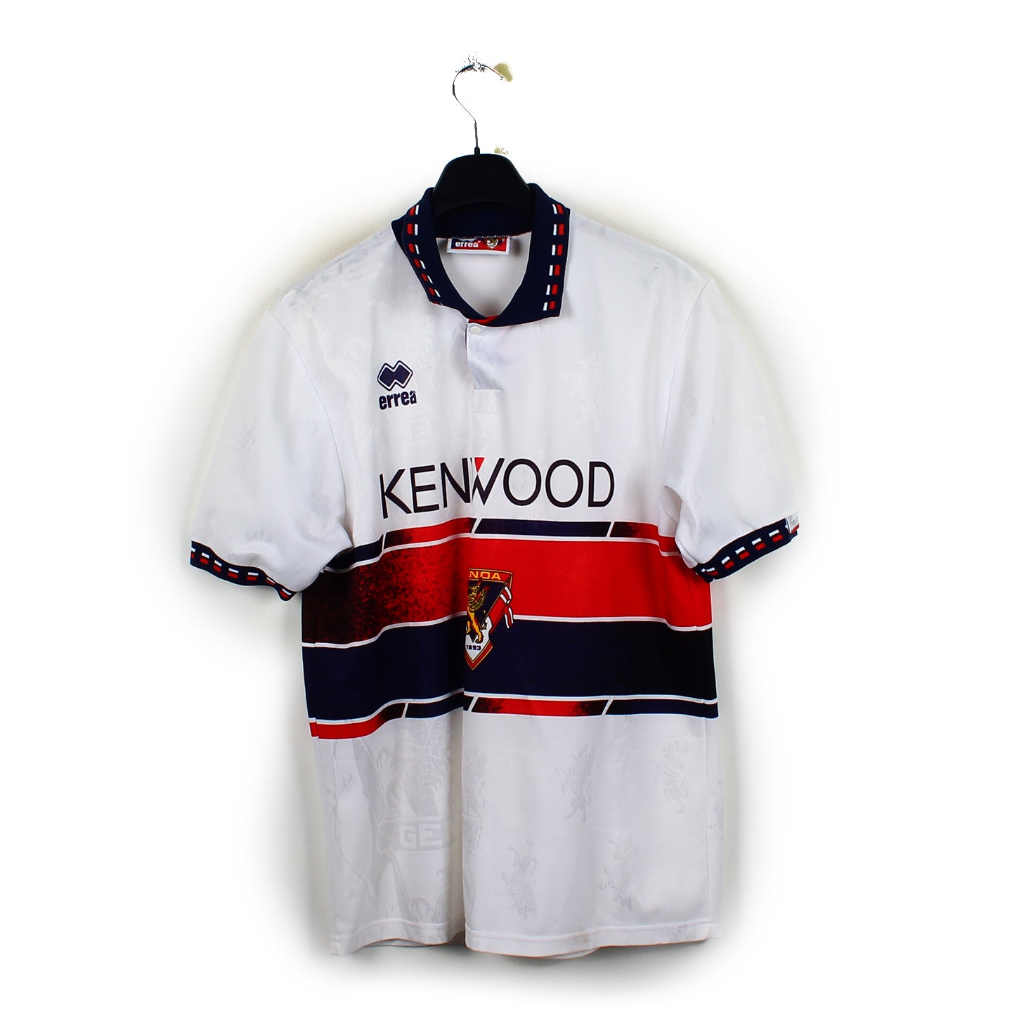 Histoire : Rarissime maillot extérieur porté par le Genoa lors d'une saison difficile. Le club basé à Gênes luttera pour se maintenir en Serie A. La 15ème place sera insuffisante et synonyme de retour en 2ème division italienne.