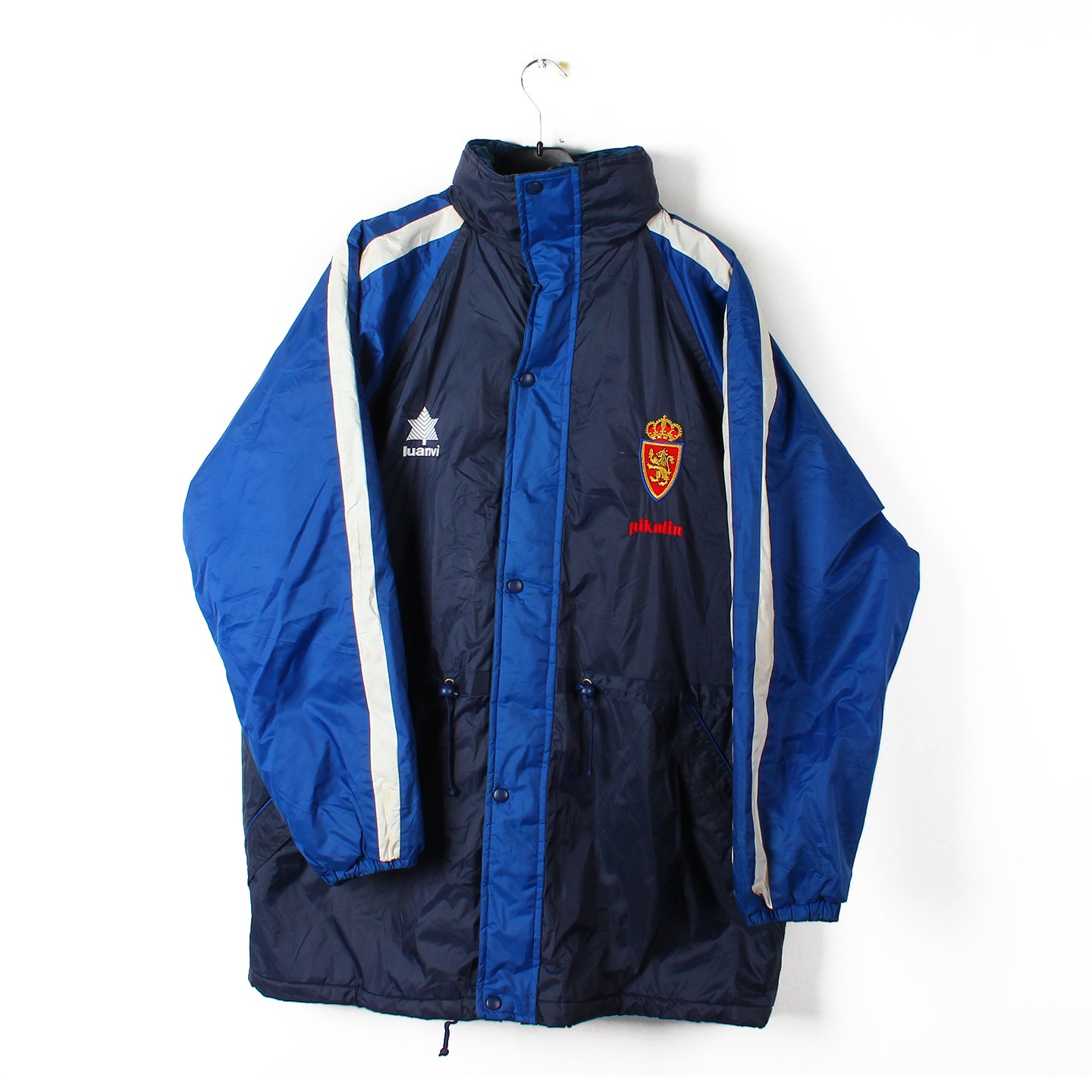 Histoire : Veste portée par les joueurs de Saragosse lors de deux saisons consécutives mais bien différentes. En 99/00, les Zaragozanos termineront à une très belle 4eme devant le Real Madrid. L'année suivante sera celle de la dégringolade, le club terminera à une décevante 17e place à 1 point de la relégation.