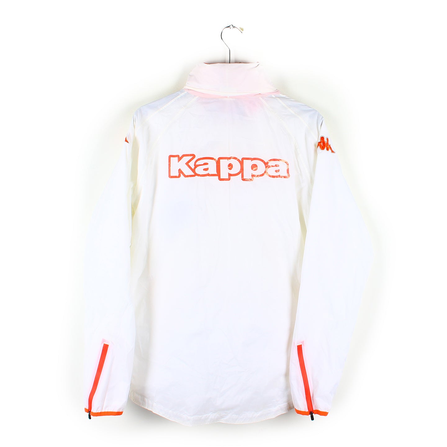 La pièce en détail : Coupe-vent dans une bonne conservation, les logos sont nickels mais l'inscription au dos est usée.