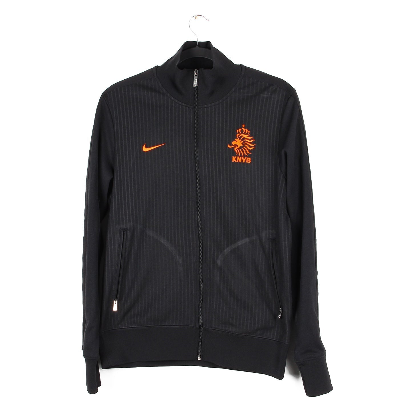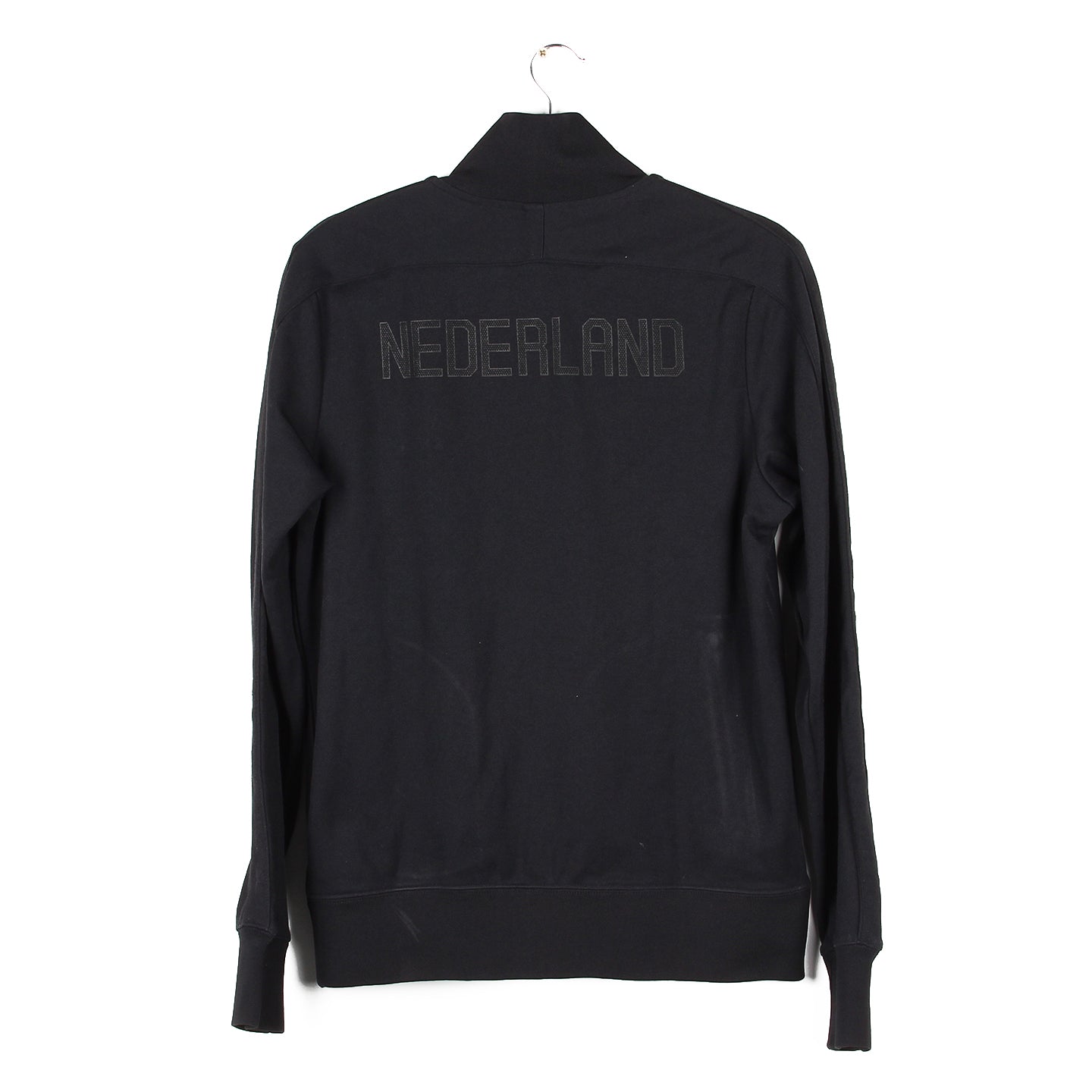 Histoire : Veste de survêtement portée par la Hollande lors de l'Euro 2012. Malgré un statut de favoris, les hommes de Bert van Marwijk contre-performeront dès la phase de poules où ils finiront dernier d'un groupe relevé avec 0 point (Allemagne, Portugal et Danemark).