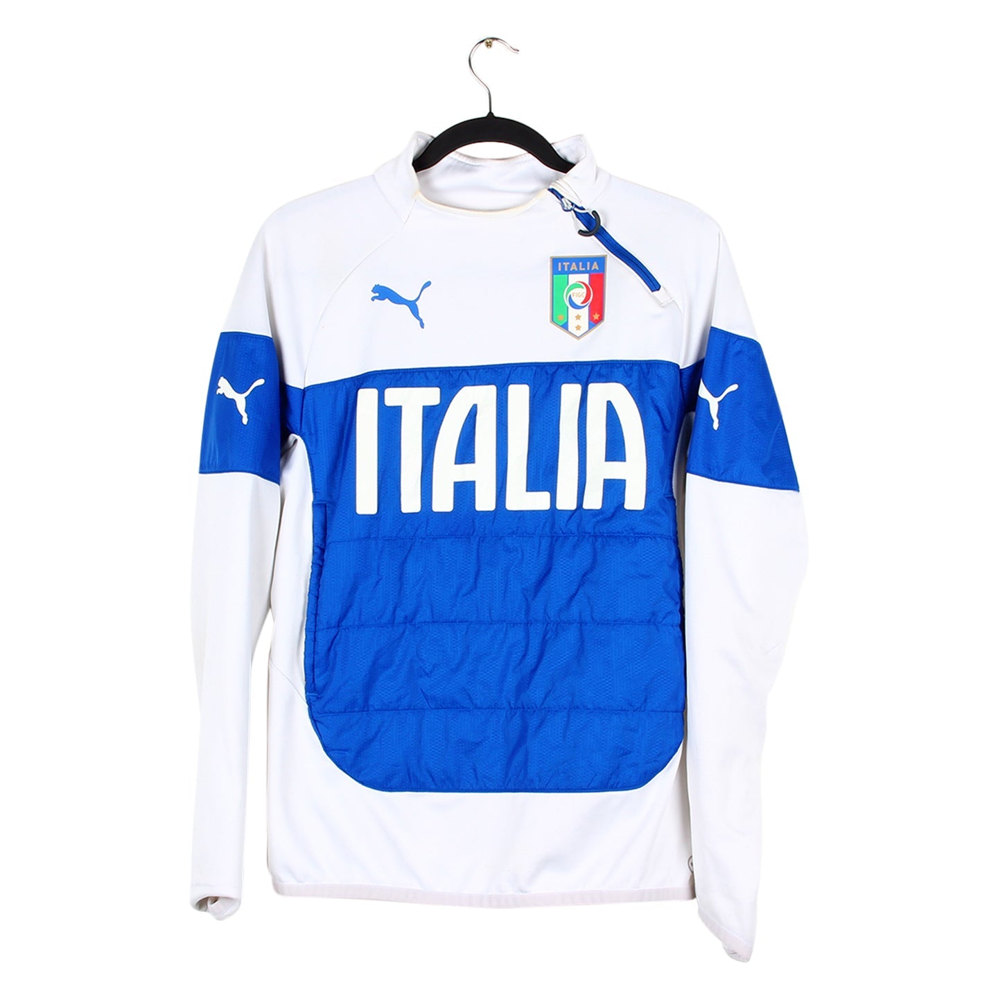 Histoire : Sweat d'entraînement porté par la Squadra Azzura lors des qualifications pour l'Euro 2016. Les Italiens sortiront premiers invaincus d'un groupe assez relevé avec la Croatie et la Norvège notamment, durant l'époque Antonio Conte.
