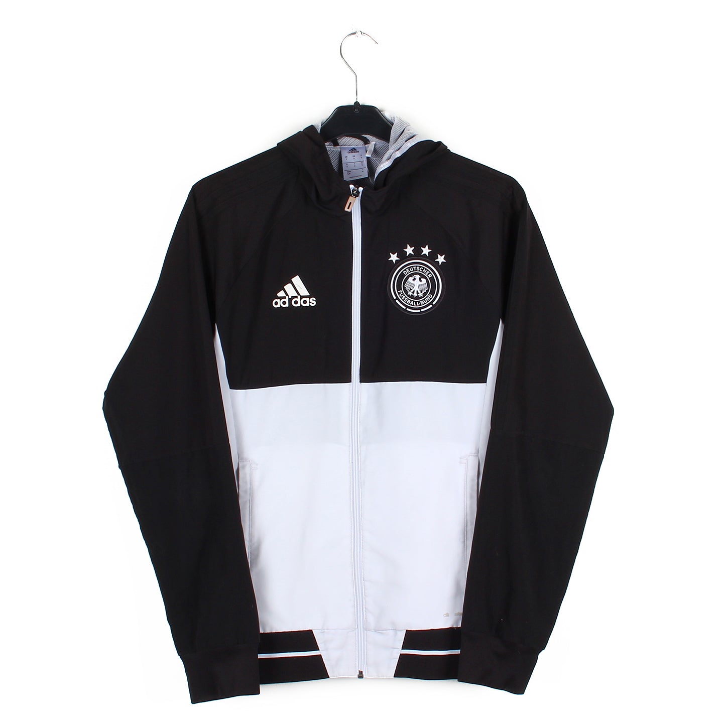 Histoire : Veste de survêtement portée par les Allemands lors de l'Euro 2016 après avoir été sacrés Champion du Monde en 2014. La Mannschaft parviendra à se hisser en demi-finale avant d'être éliminée par l'Equipe de France, organisatrice de la compétition.