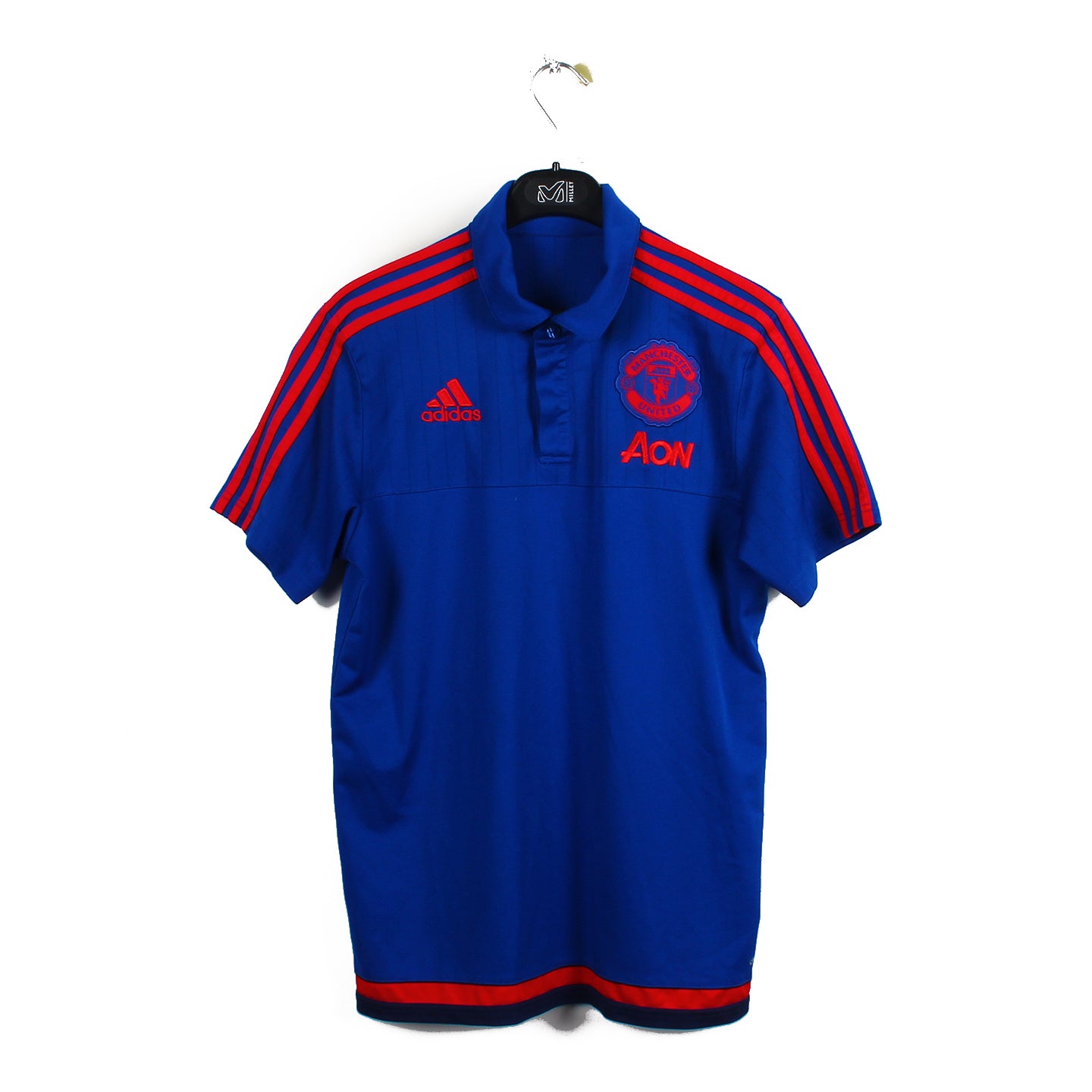 Histoire : Polo d'entraînement porté par les Red Devils lors de la dernière saison de Van Gaal au club. Les Mancuniens remporteront la FA Cup, qui viendra leur sauver la saison.